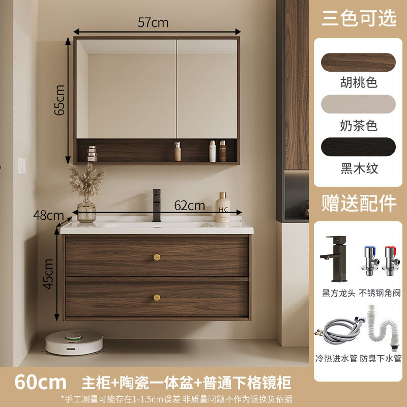 中古风浴室柜奶油风陶瓷一体组合洗脸盆卫生间洗手盆套装洗漱台盆
