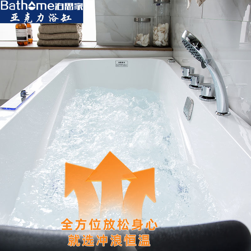 加厚独立式带双裙边亚克力浴盆恒温加热冲浪按摩浴池简约浴缸包邮