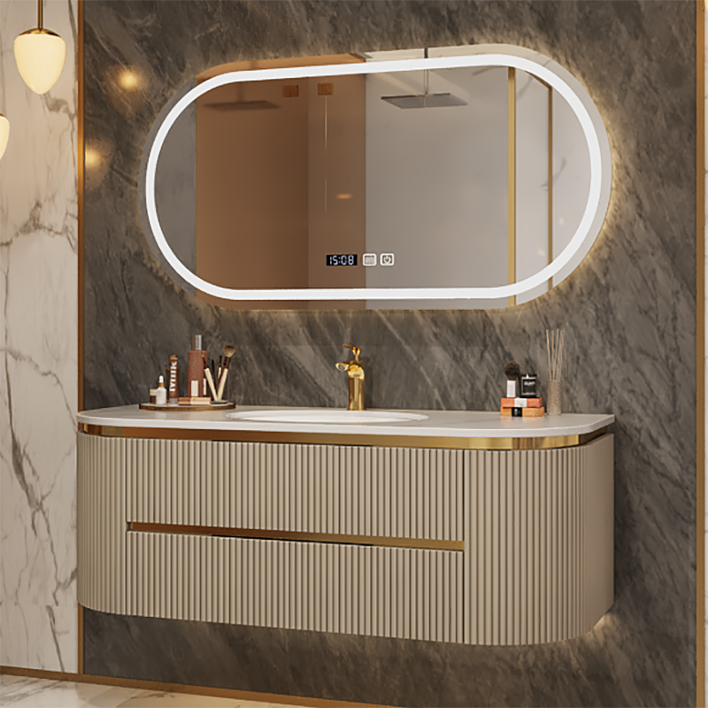 半圆弧形轻奢浴室柜橡木岩板陶瓷无缝盆洗脸盆组合洗漱台洗手盆柜
