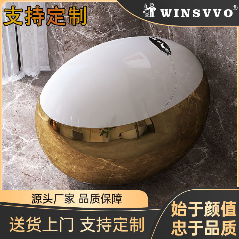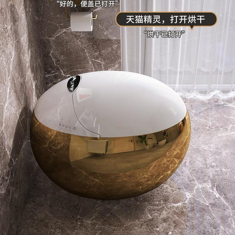 卫浴金色蛋形智能马桶一体语音智控全自动翻盖虹吸式坐便器