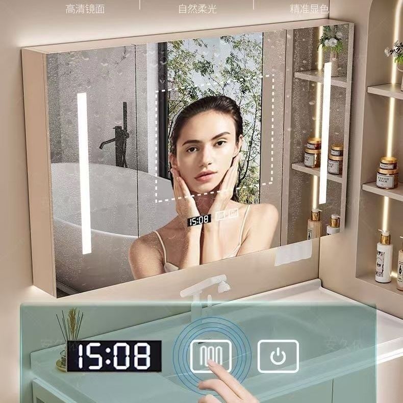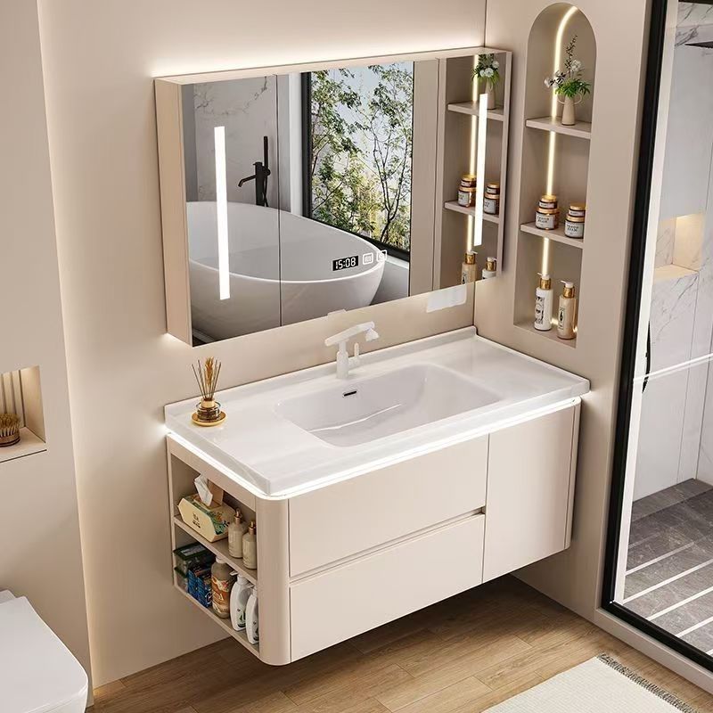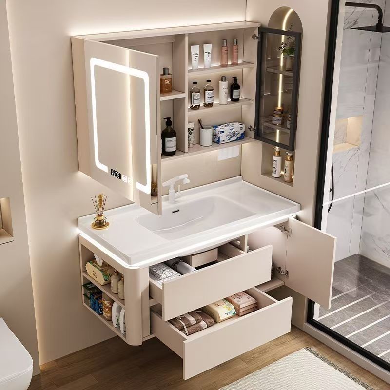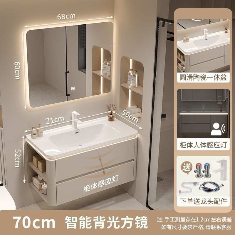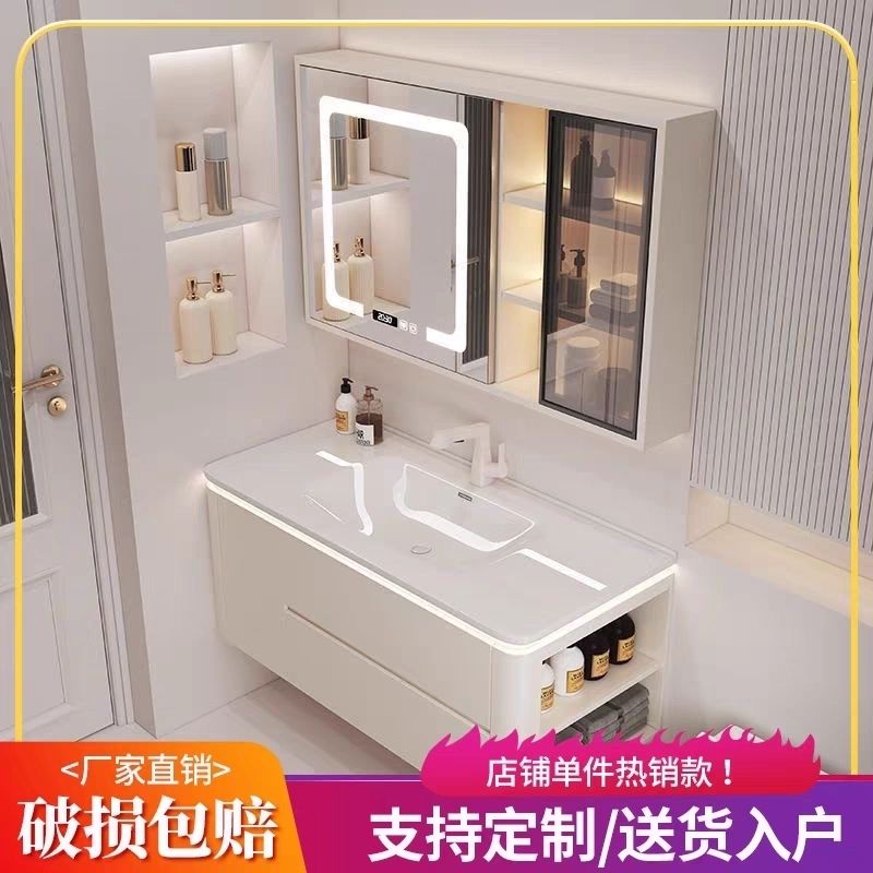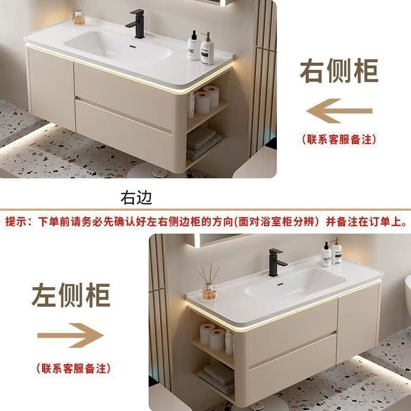可定制奶油陶瓷侧边储物一体圆角卫生间智能洗手脸浴室柜洗漱组合