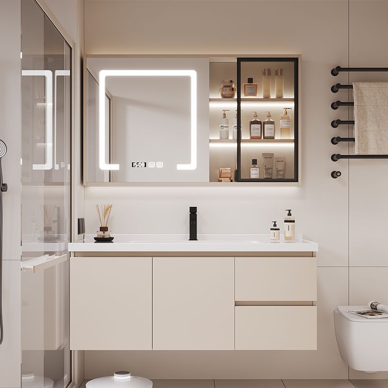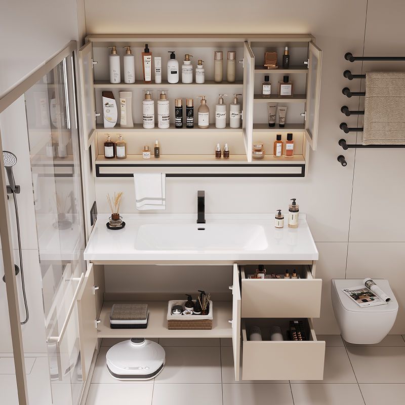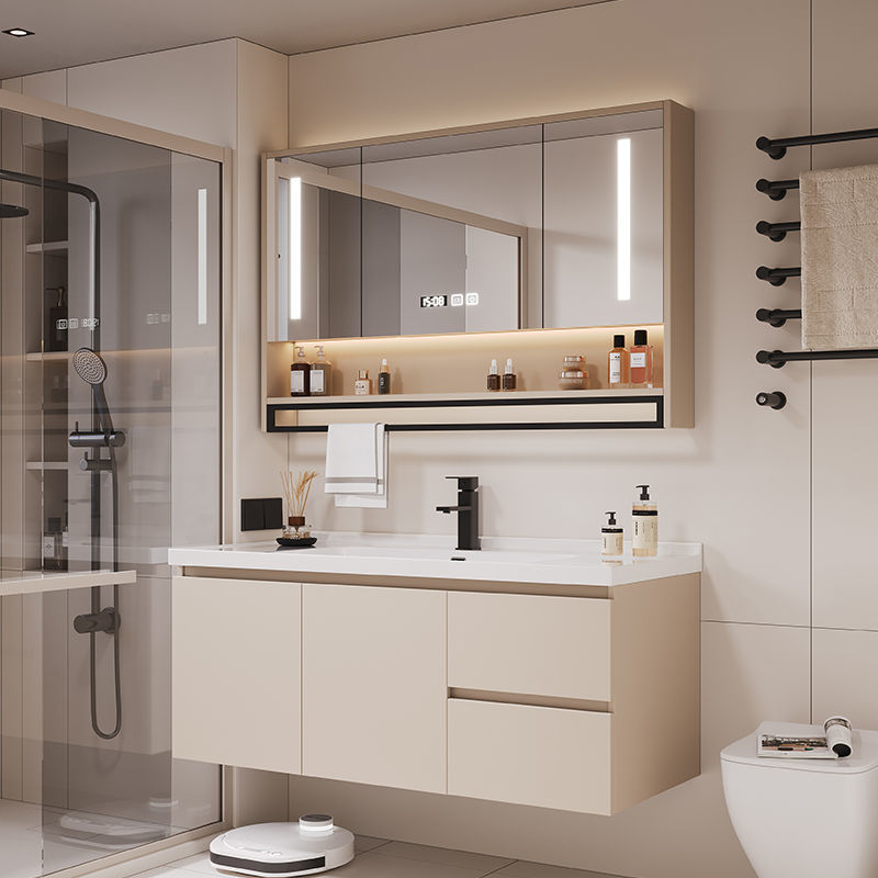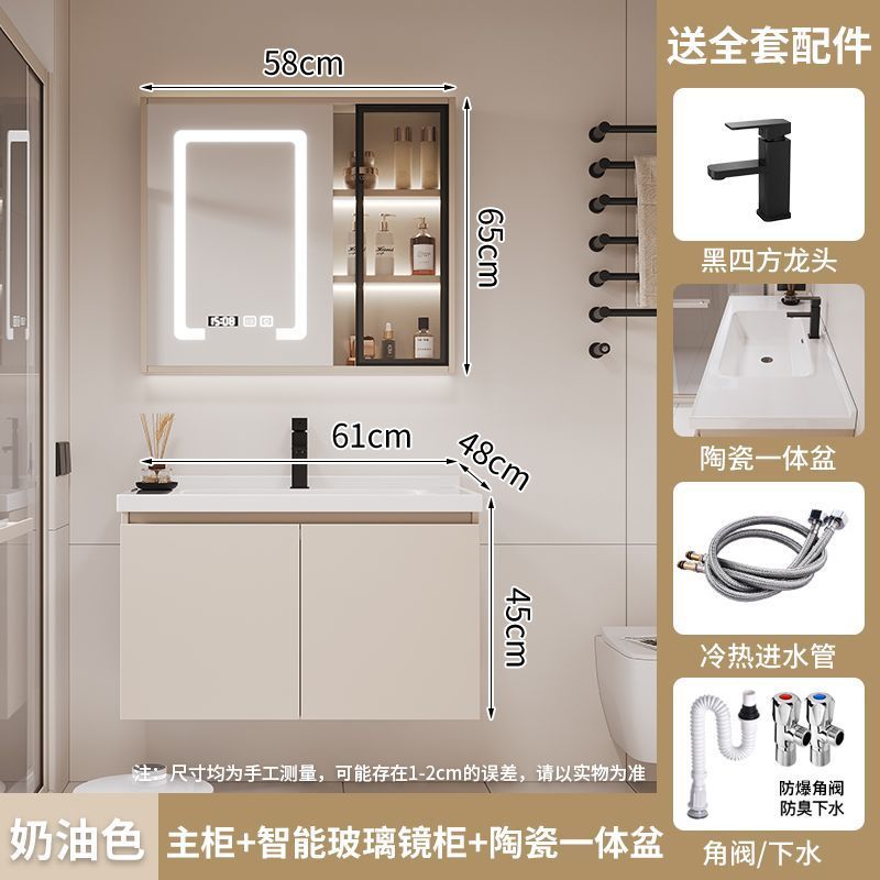 奶油简约实木陶瓷现代一体智能浴室柜卫生间洗脸盆洗手盆组合洗漱