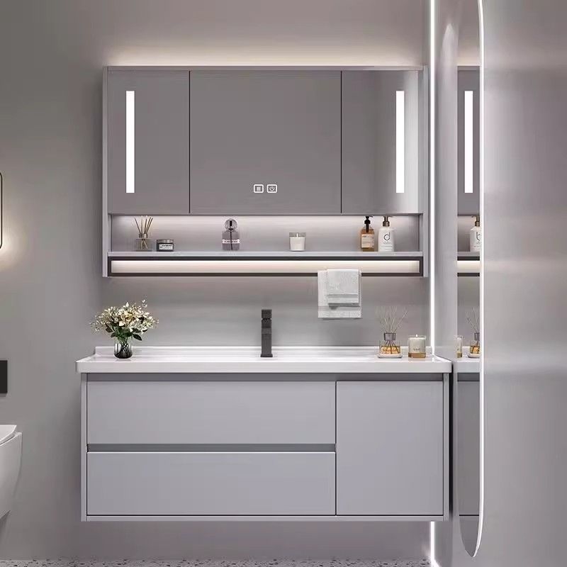 奶油简约实木陶瓷现代一体智能浴室柜卫生间洗脸盆洗手盆组合洗漱