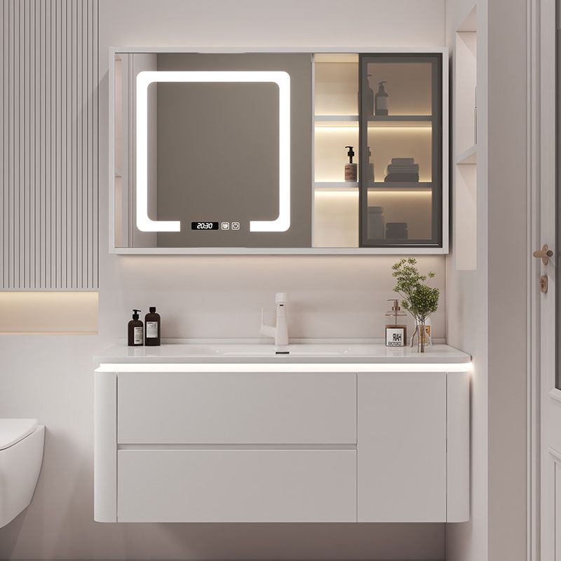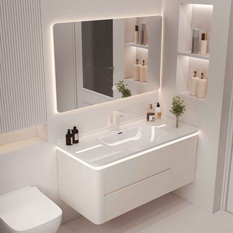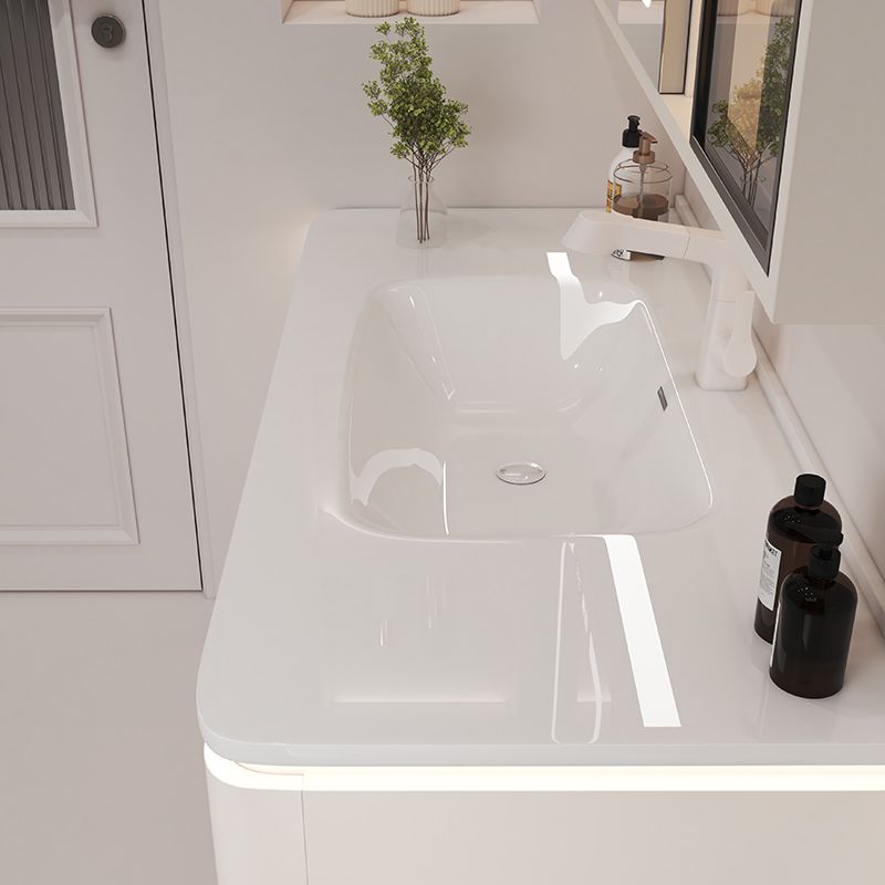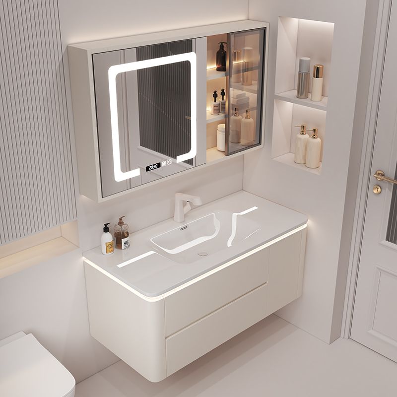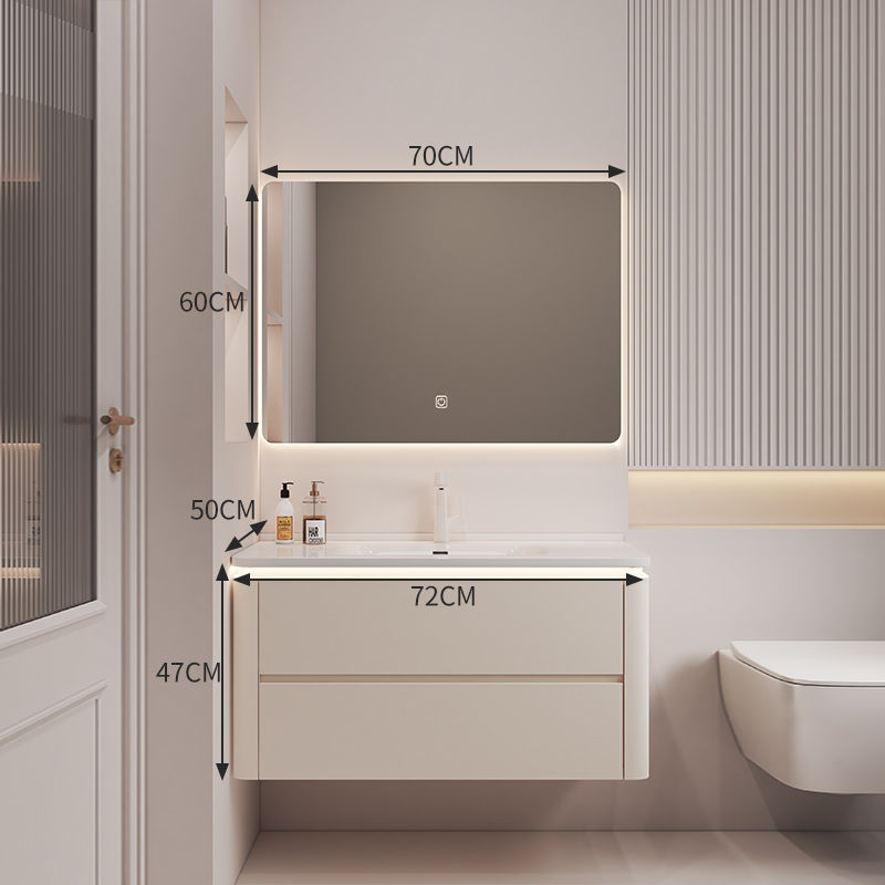 奶油风陶瓷一体盆浴室柜实木洗手盆柜组合简约智能洗脸盆洗手台柜