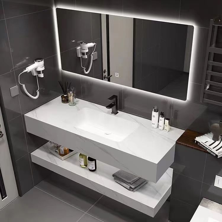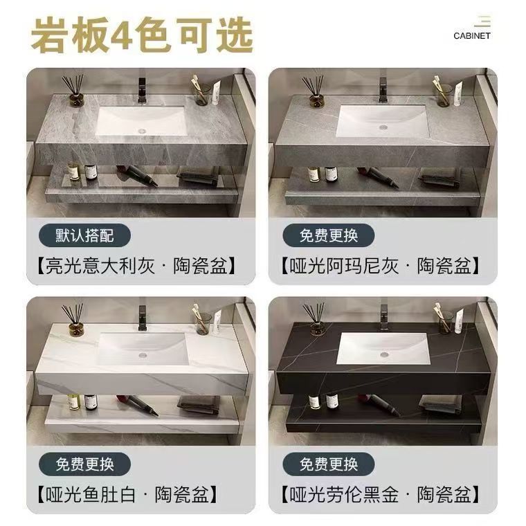 定制双层岩板浴室柜一体组合无缝陶瓷酒店民宿洗漱卫生间洗脸盆