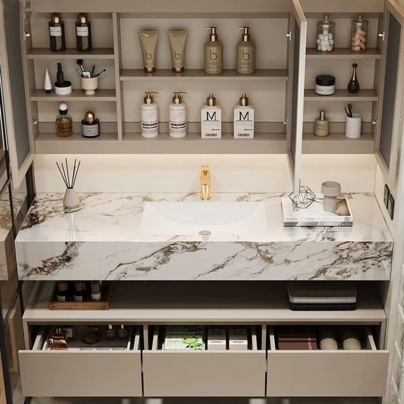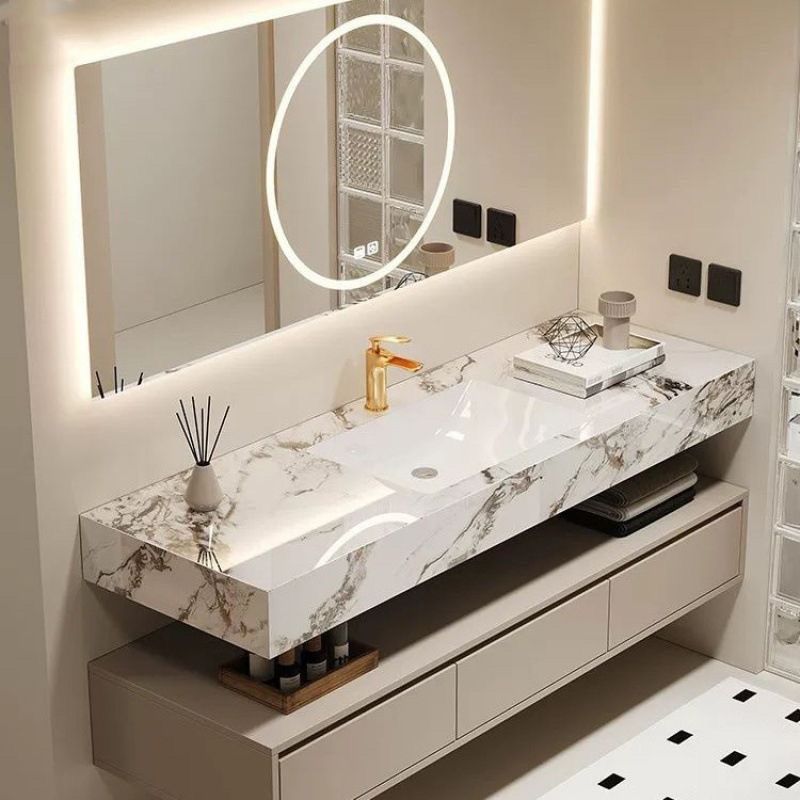 宝格丽酒店岩板浴室柜组合陶瓷一体无缝智能卫生间洗漱洗脸盆洗手
