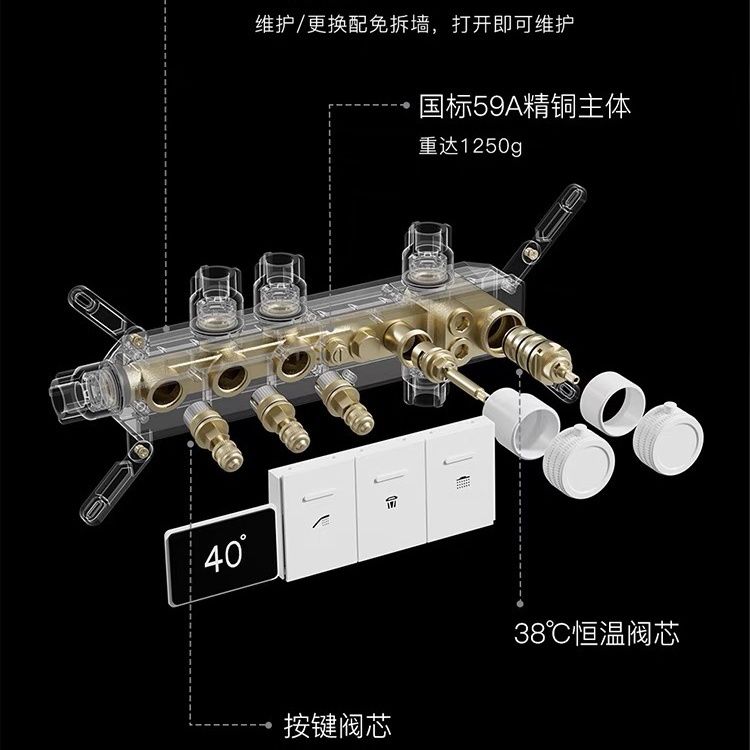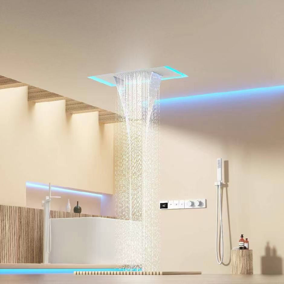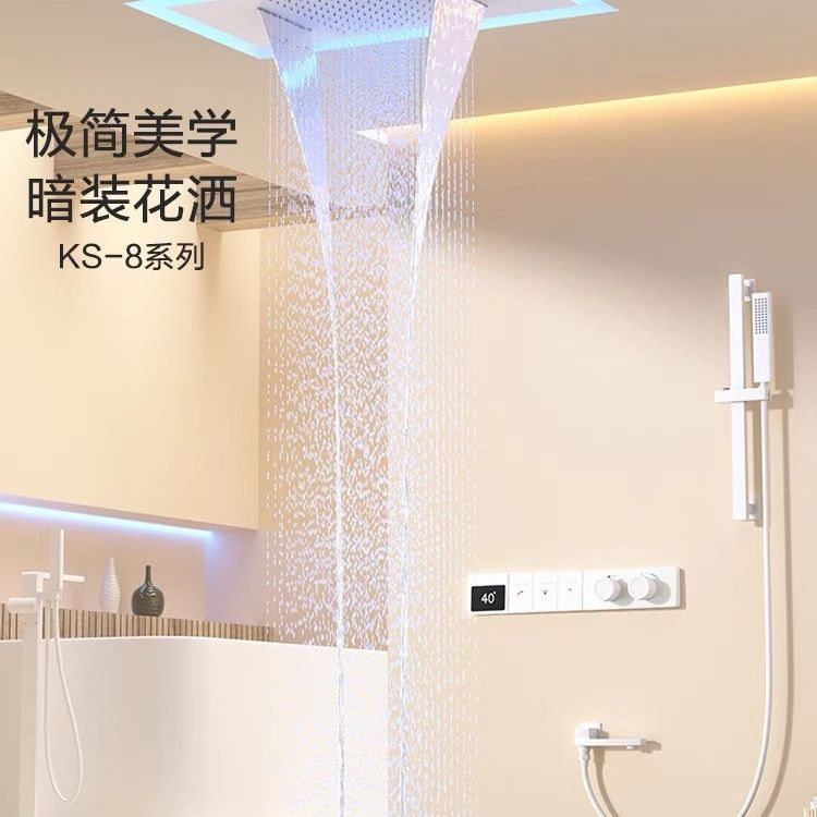 德国高档恒温隐形吊顶暗装花洒淋浴套装一体黄铜喷头入墙式全套