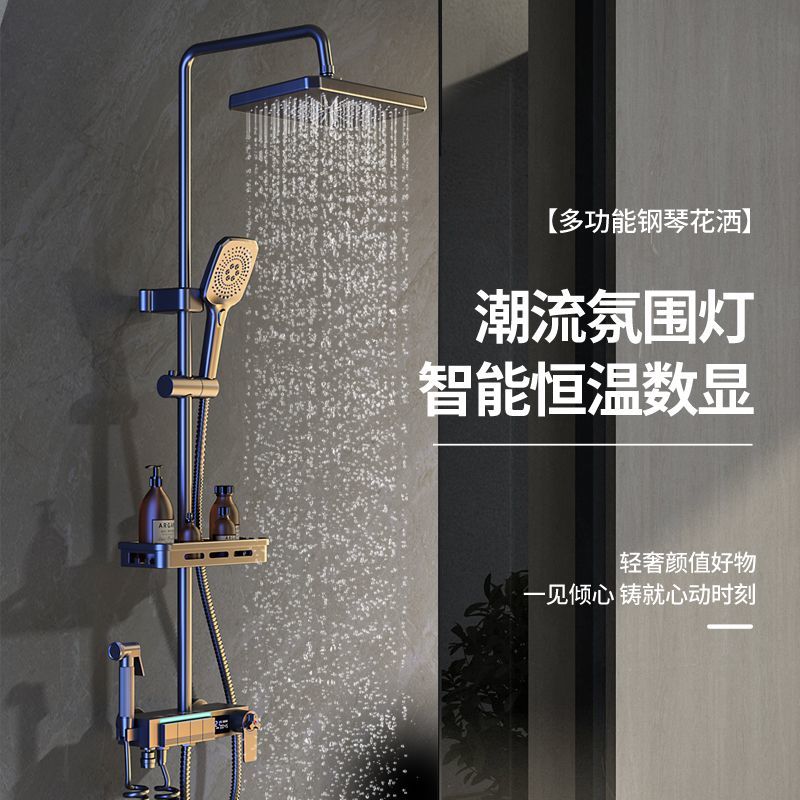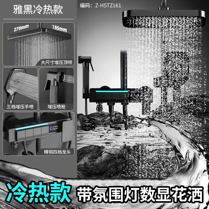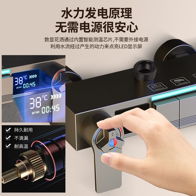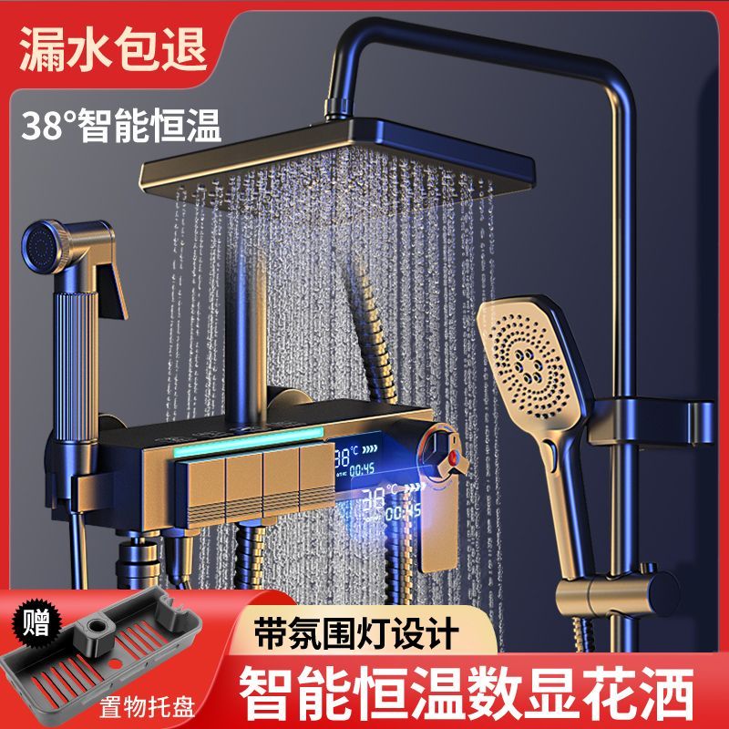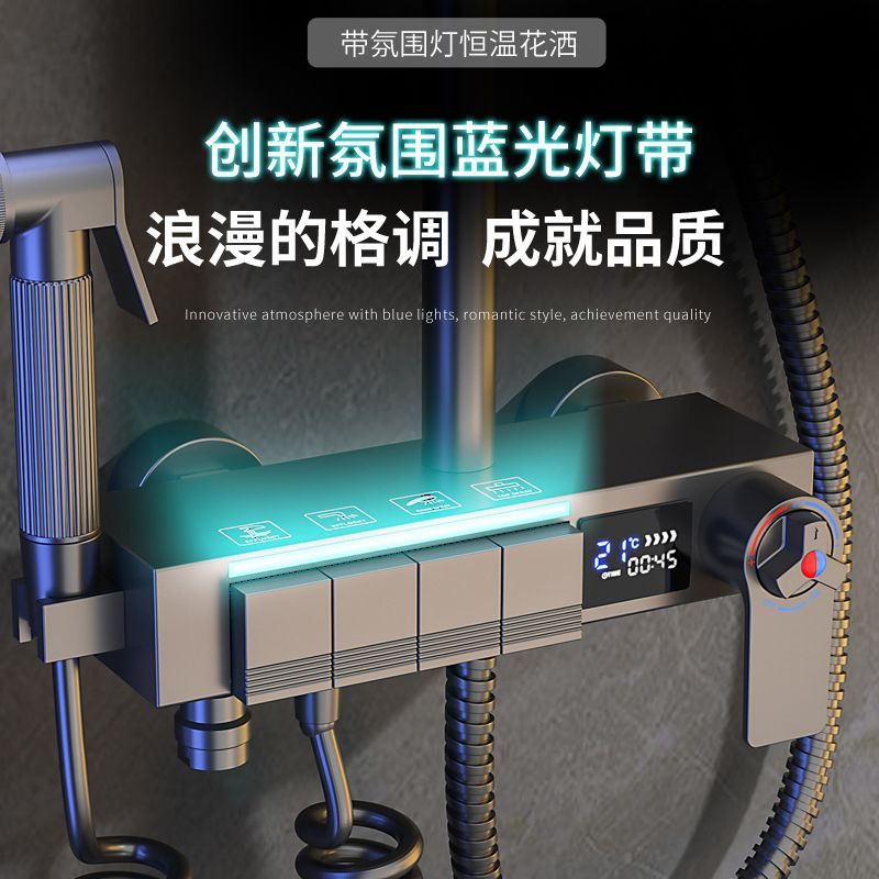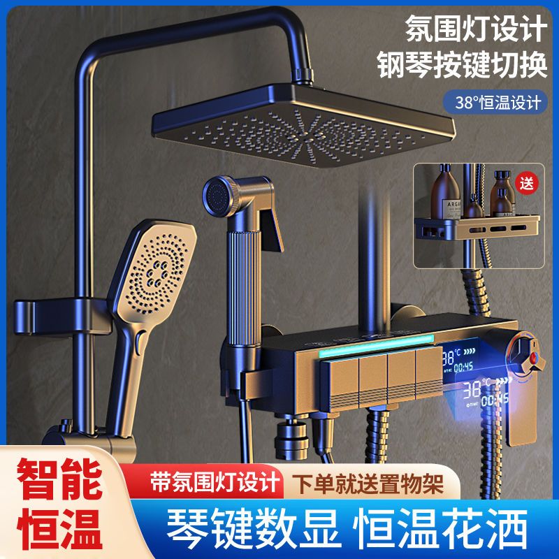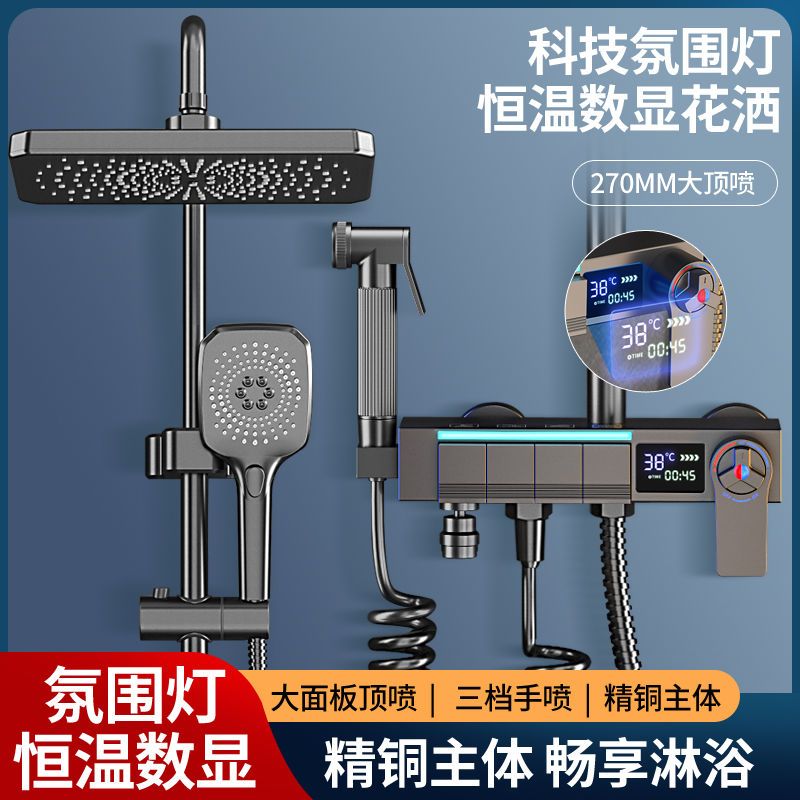 心力淋浴增压家用洗澡智能恒温数显全铜花洒灰色套装喷头浴室沐浴