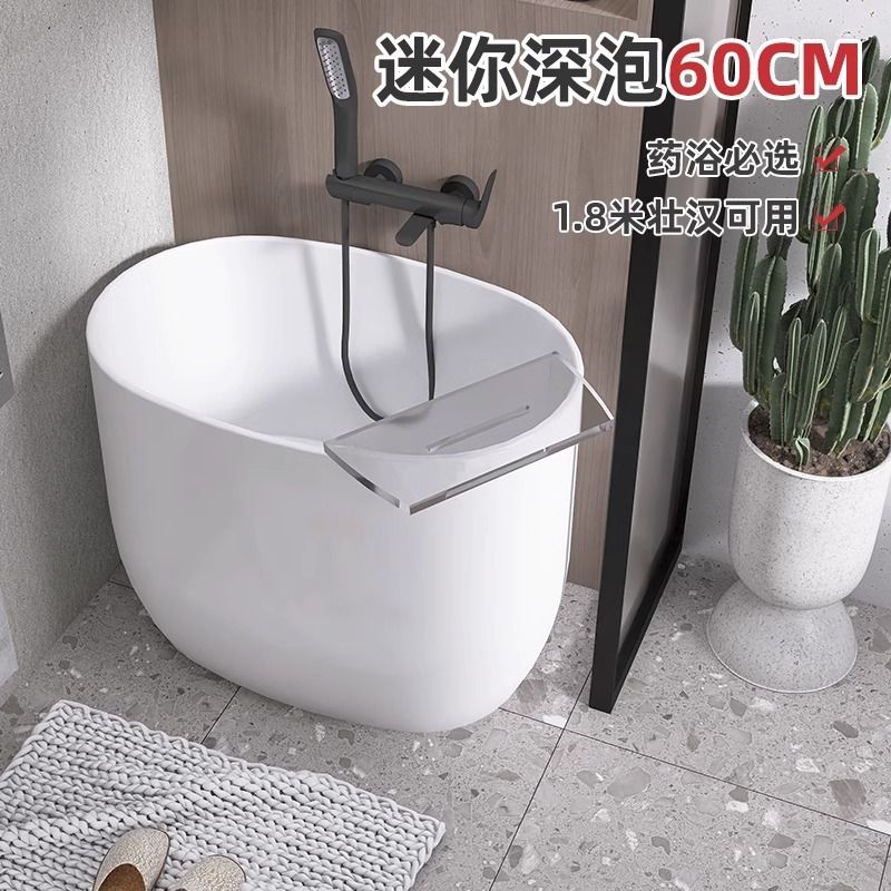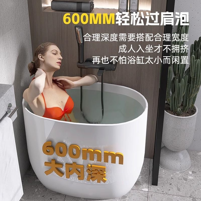 恒美乐可移动亚克力坐式深泡浴缸小户型家用迷你日式椭圆网红浴盆