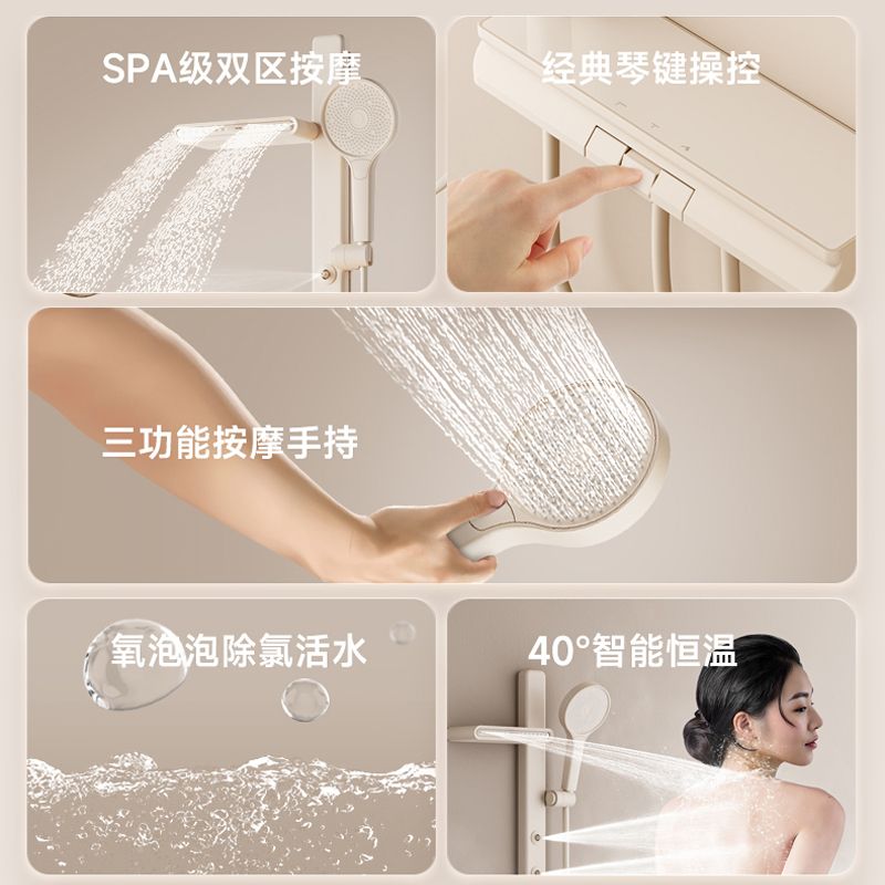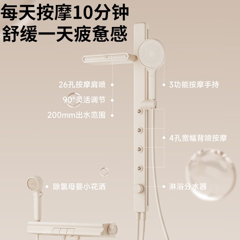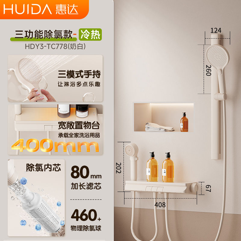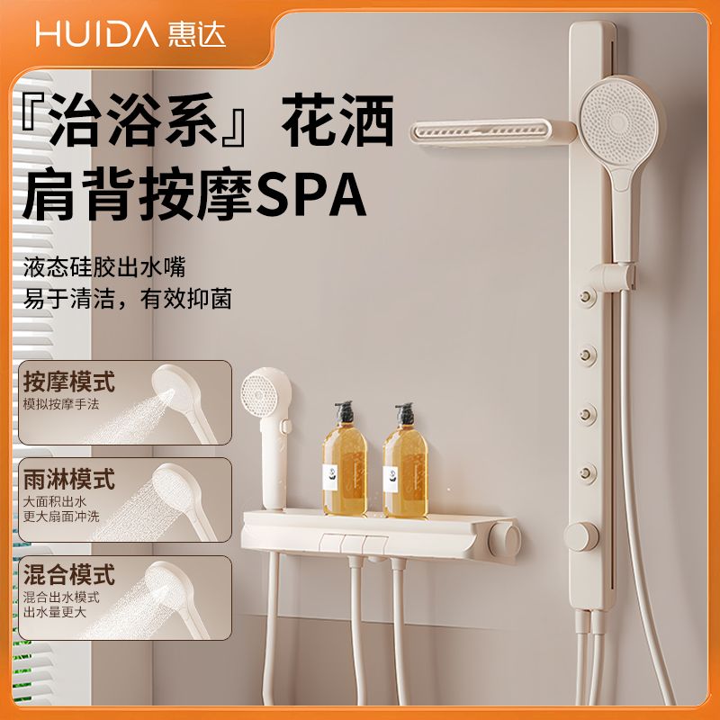惠达卫浴无顶高档花洒白色全套恒温家用极简分体式浴室增压沐浴