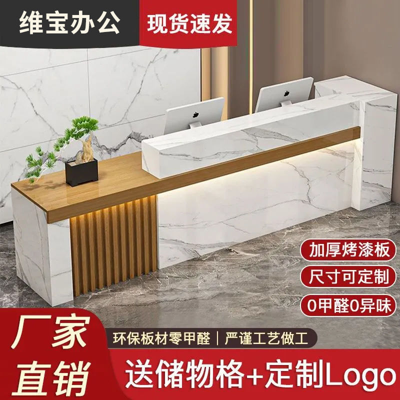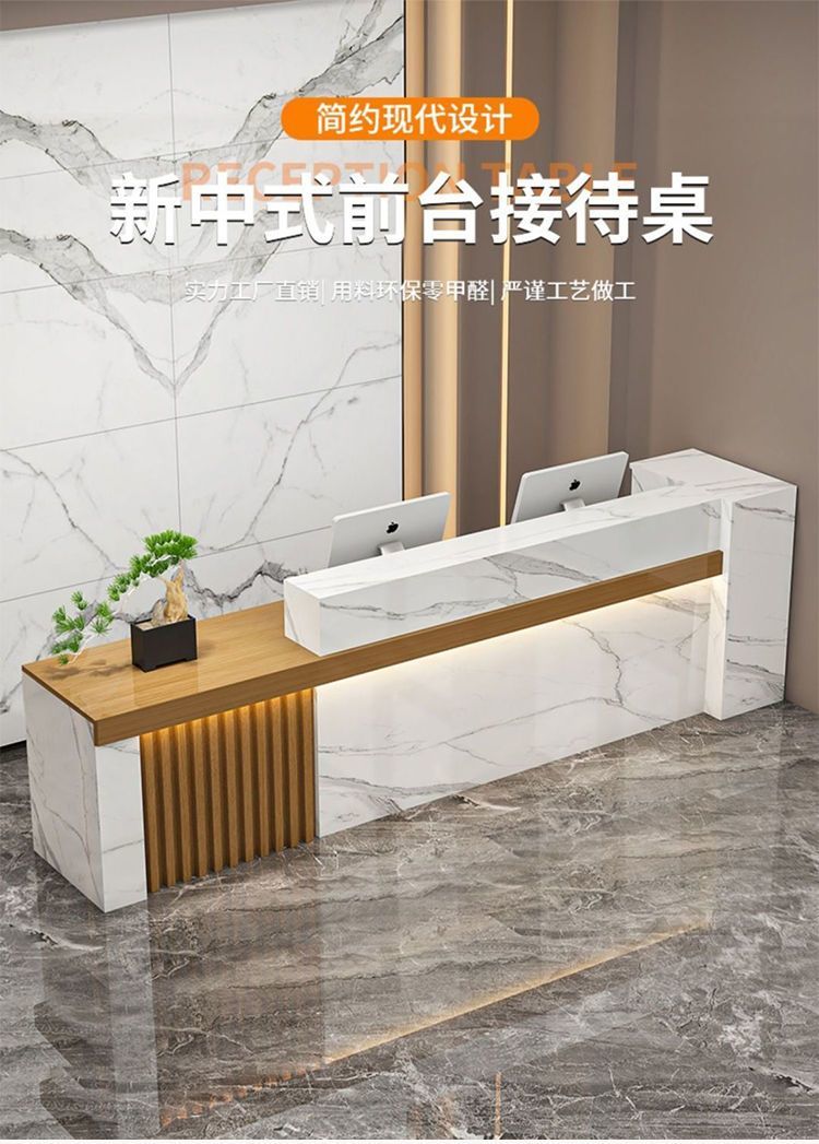 新中式公司前台接待台吧台收银台大厅柜台现代简约店铺小型办公桌