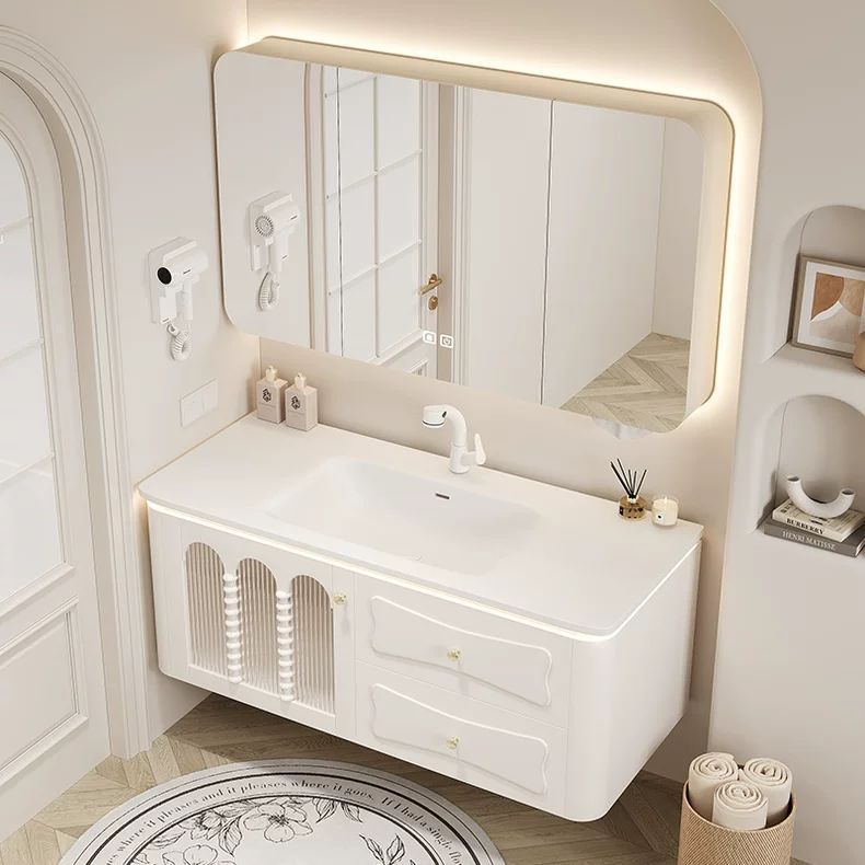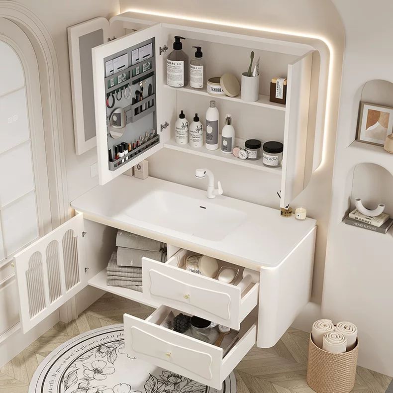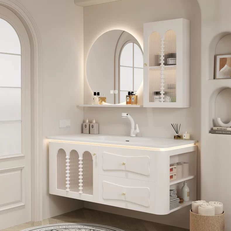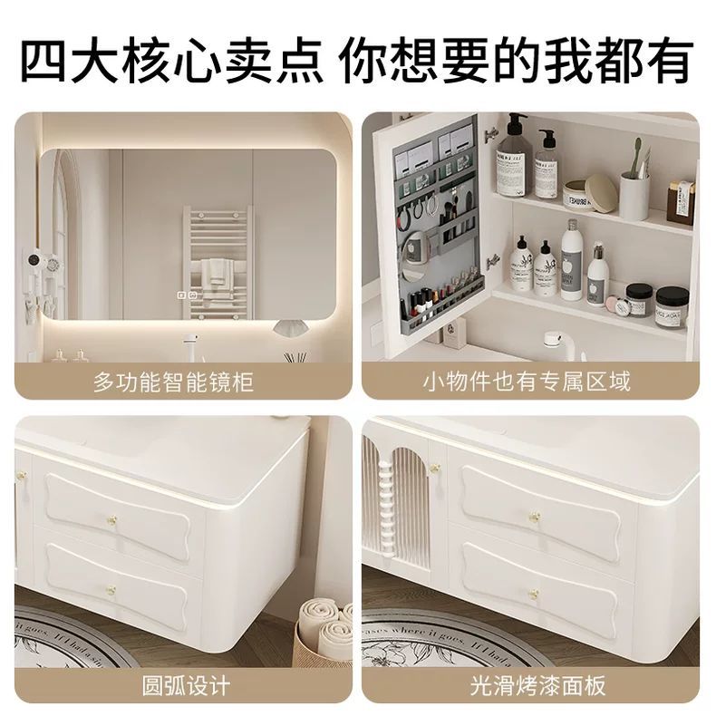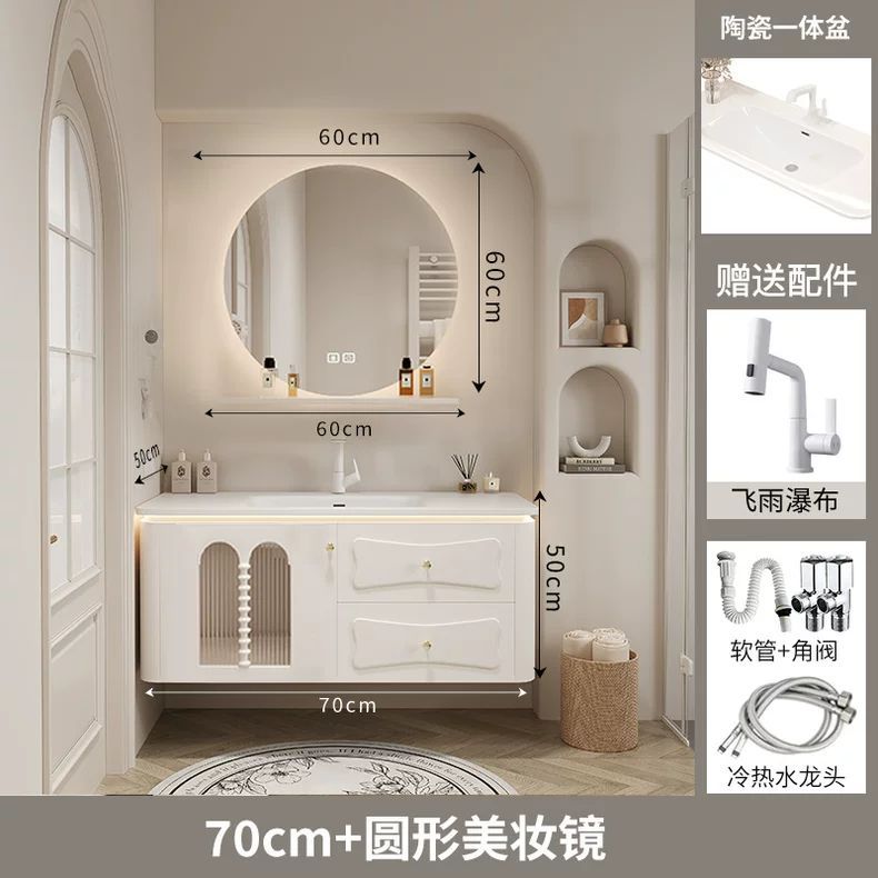 新款法式浴室柜组合一体陶瓷一体盆奶油风橡木卫浴柜洗漱台收纳柜