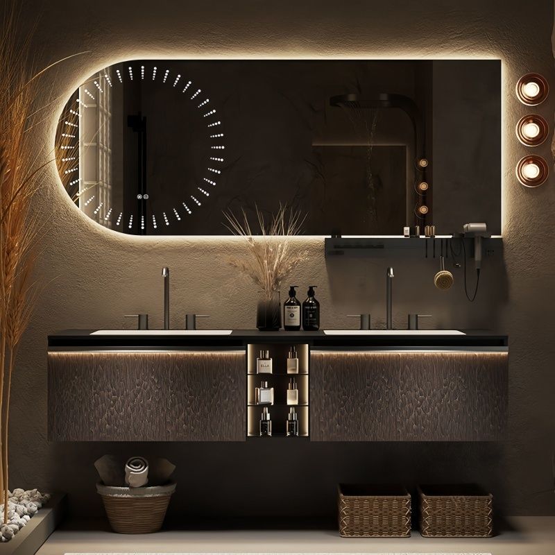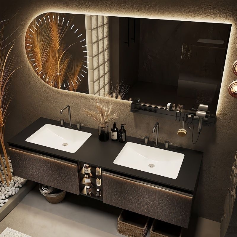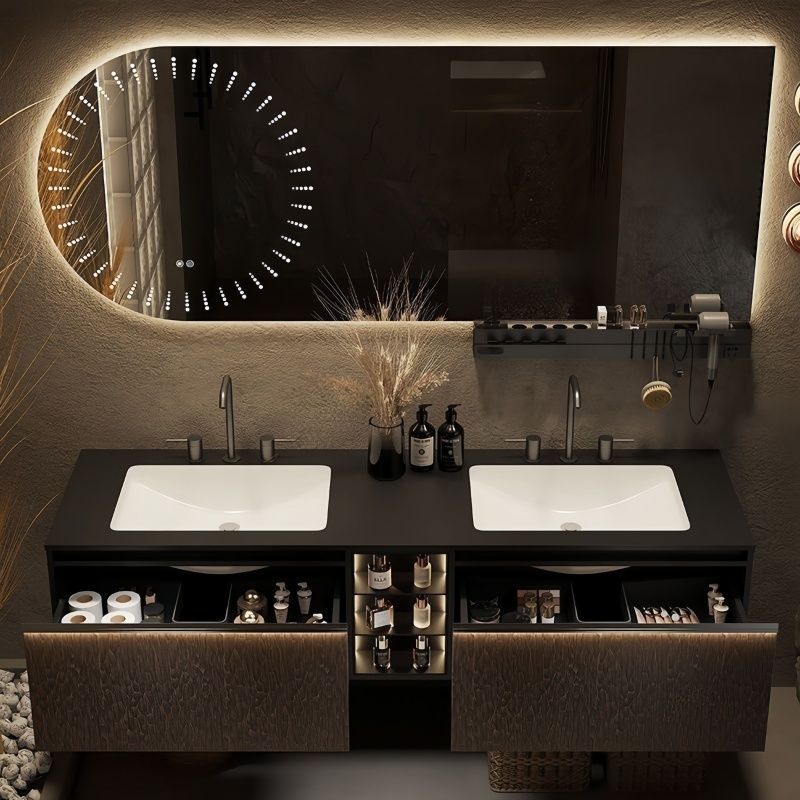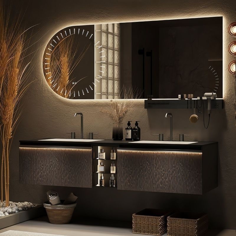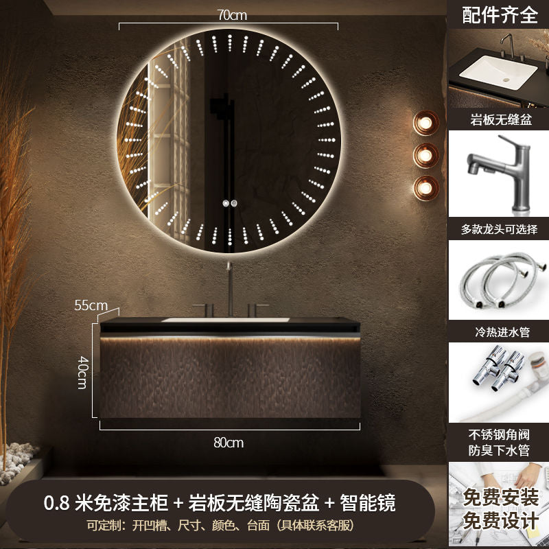 新款现代轻奢双盆智能浴室柜岩板陶瓷一体台盆卫生间洗手洗脸柜