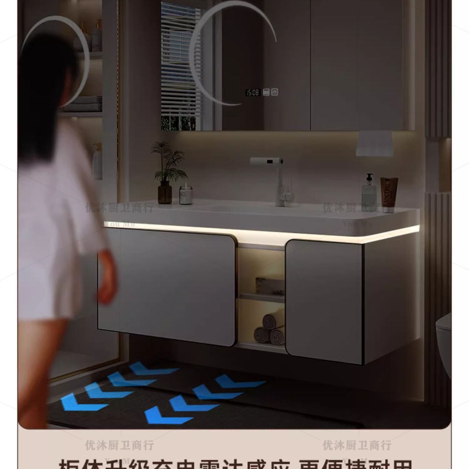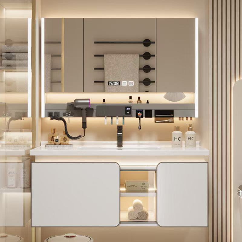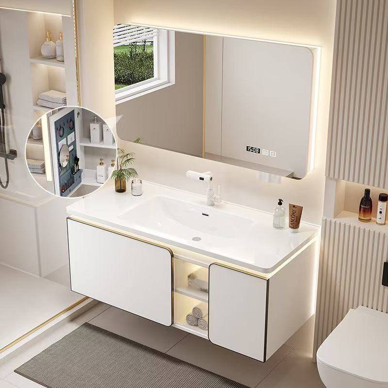 新款轻奢月光白智能浴室柜组合陶瓷一体盆洗漱池洗脸洗手组合盆