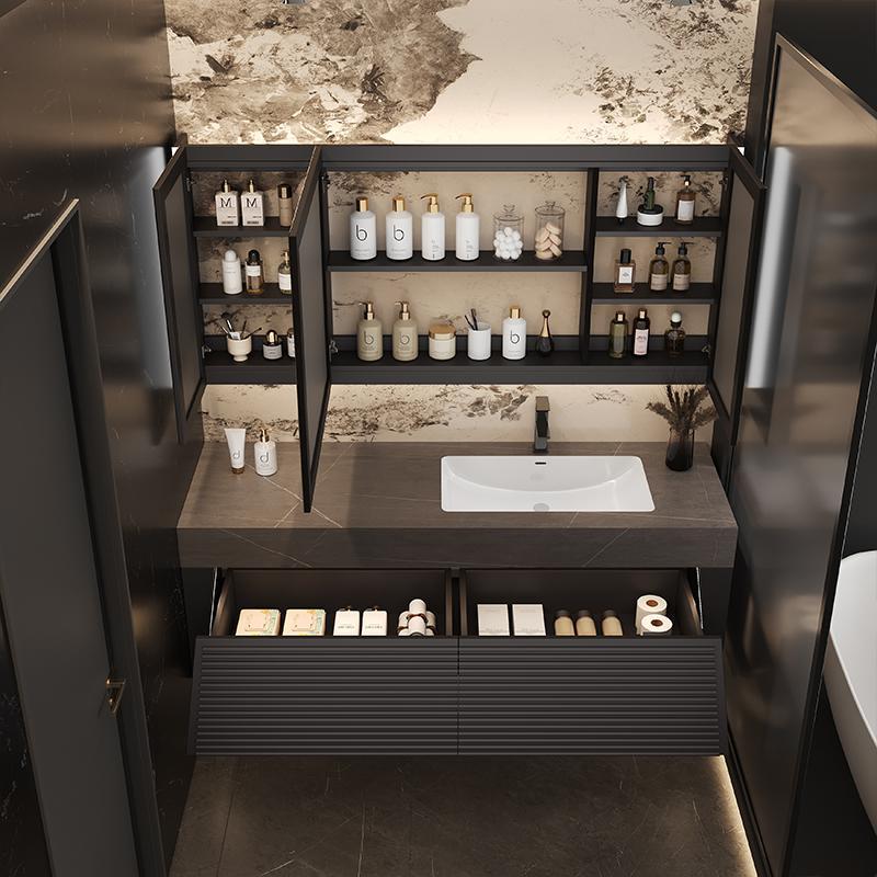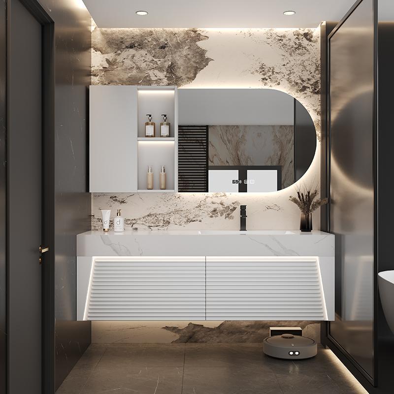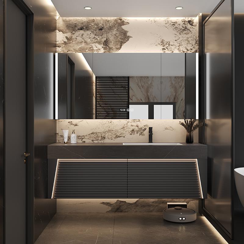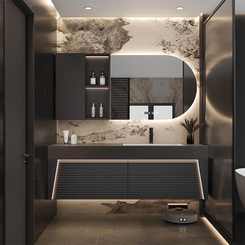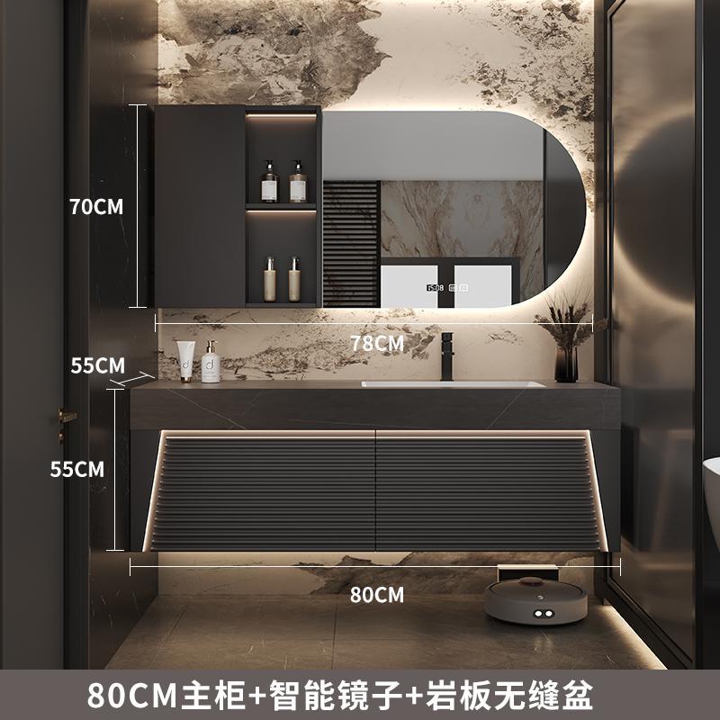 橡木智能浴室柜组合岩板无缝陶瓷一体盆卫生间洗手盆洗脸池洗漱台