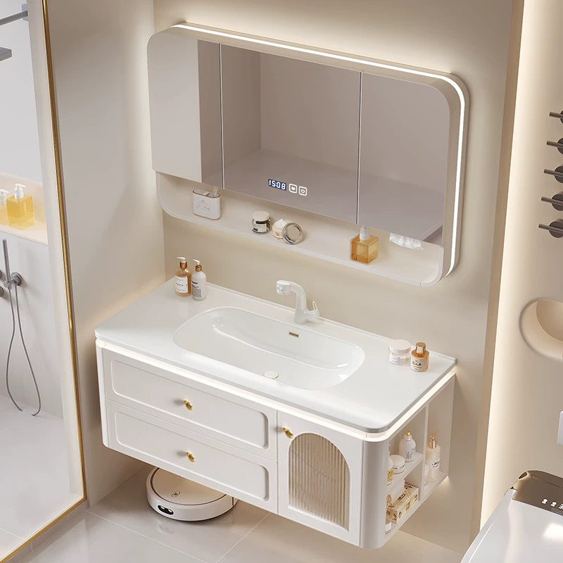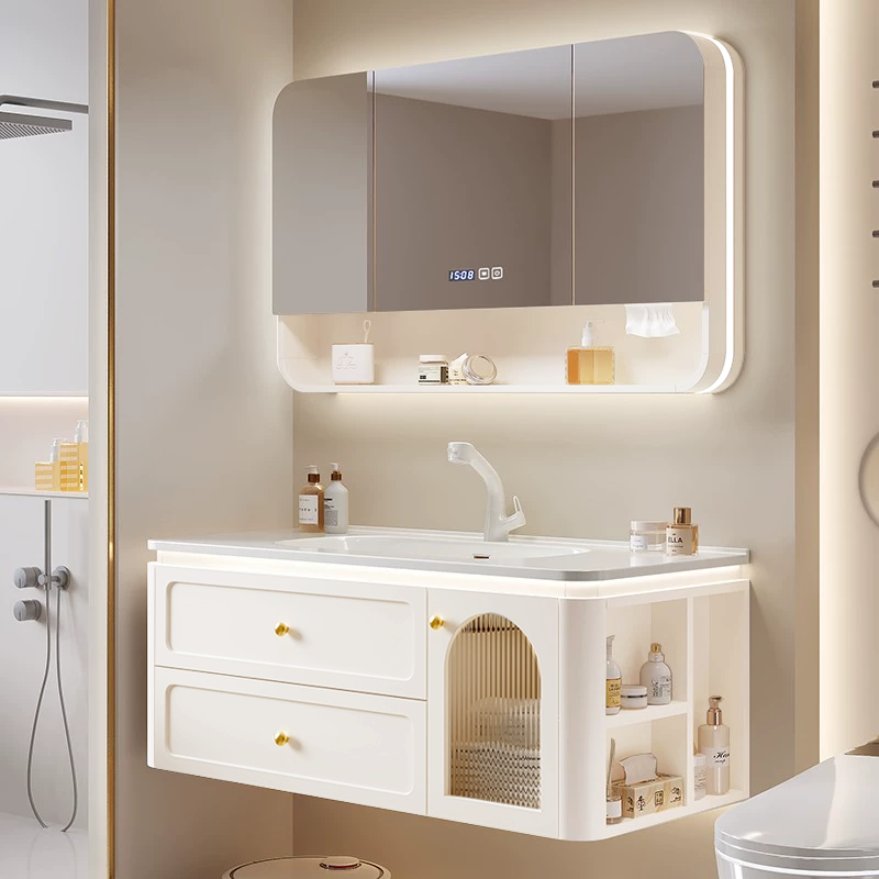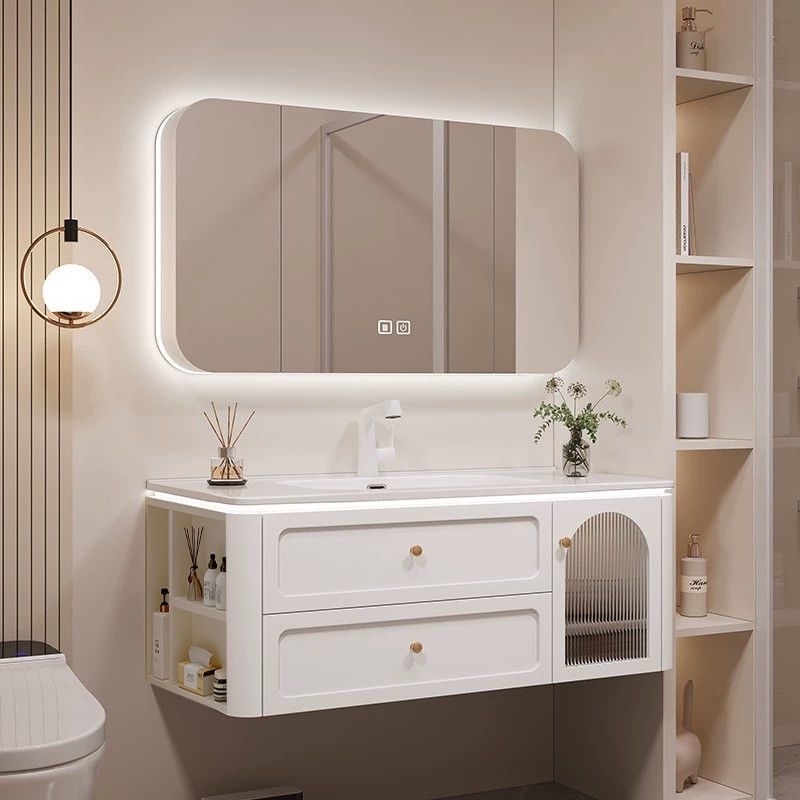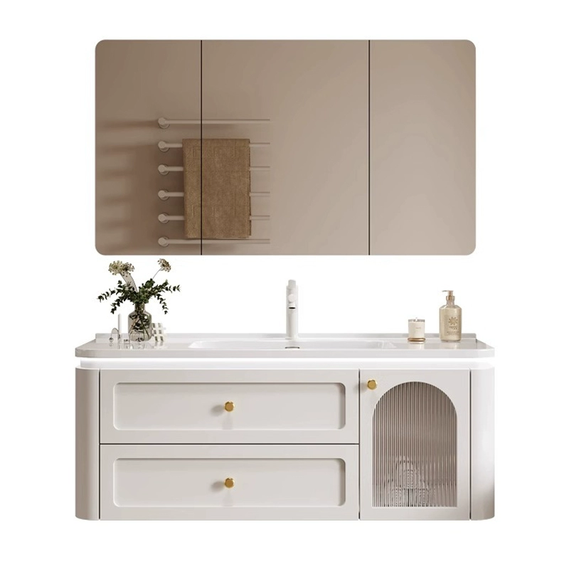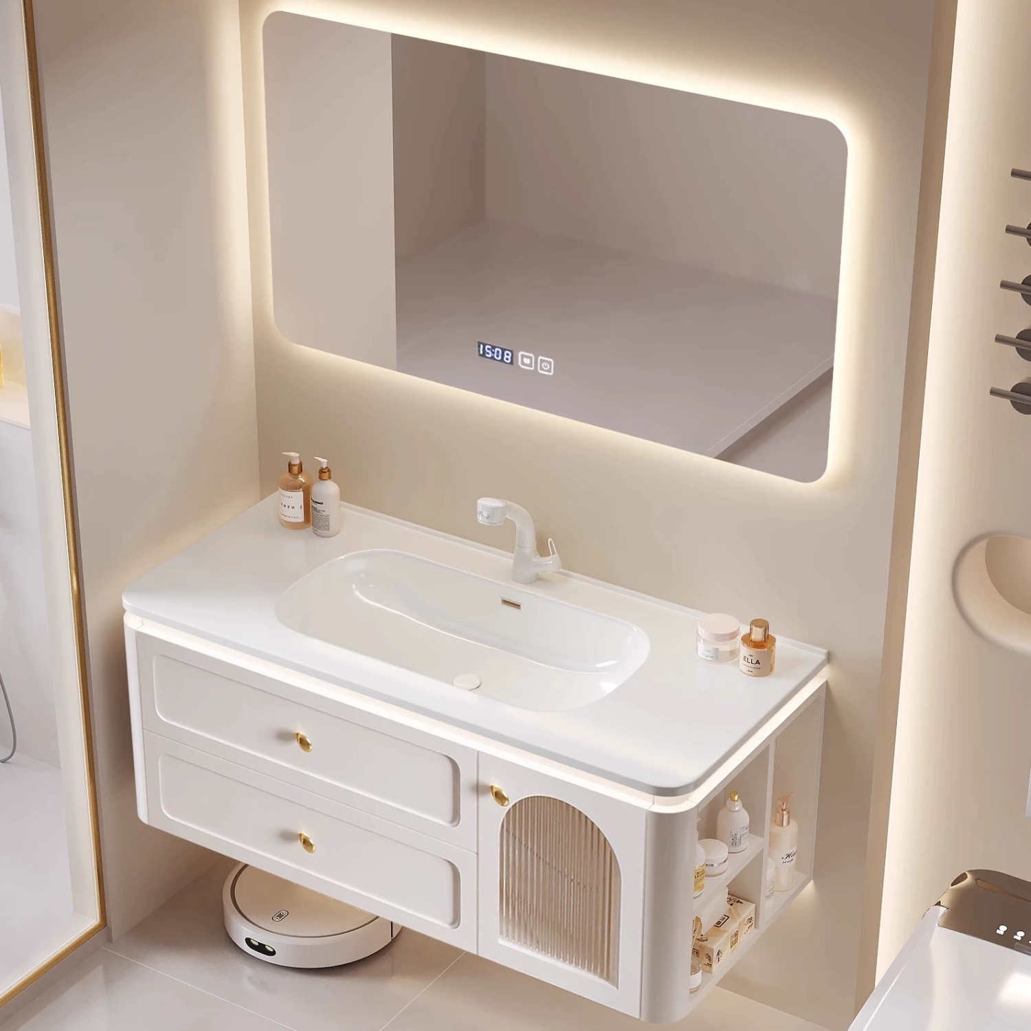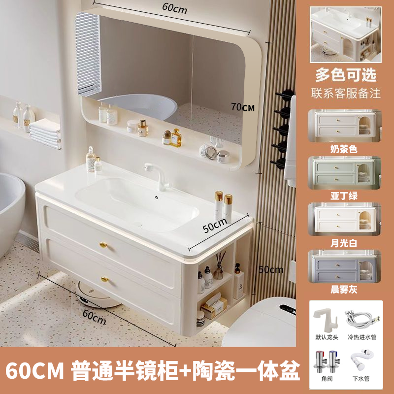 橡木智能浴室柜陶瓷一体盆奶油简约洗手池洗脸洗漱台浴室盆柜组合