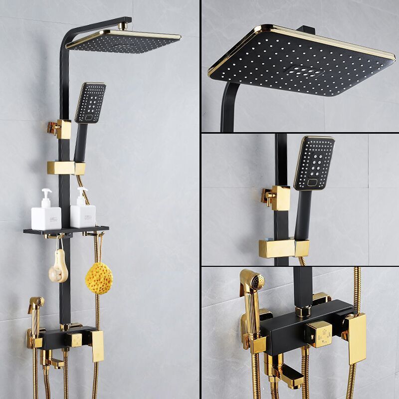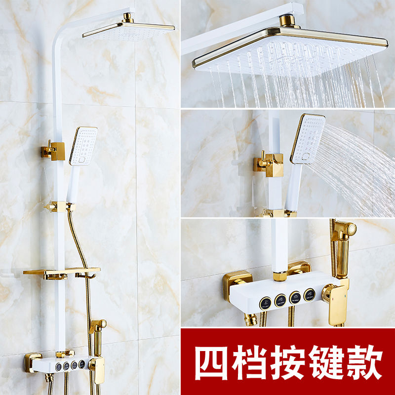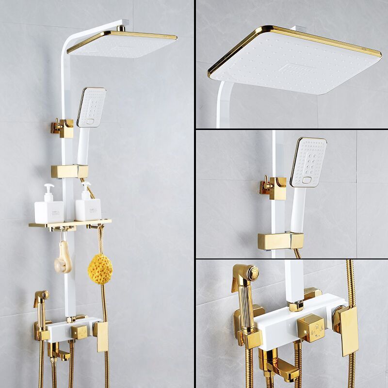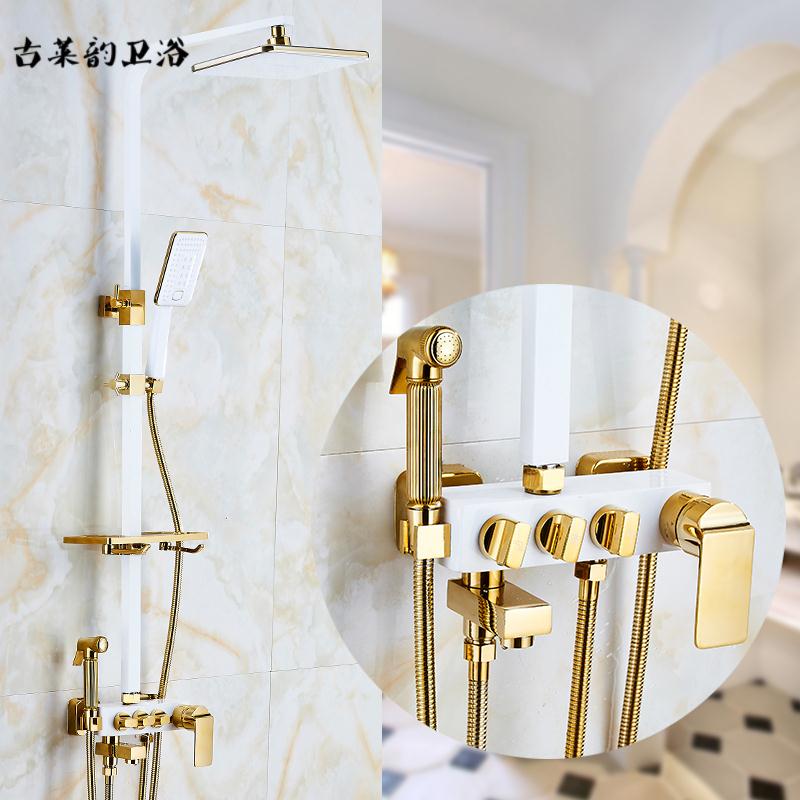 欧式浴室方形淋浴花洒水龙头套装防堵喷头冷热白金色全铜带喷枪