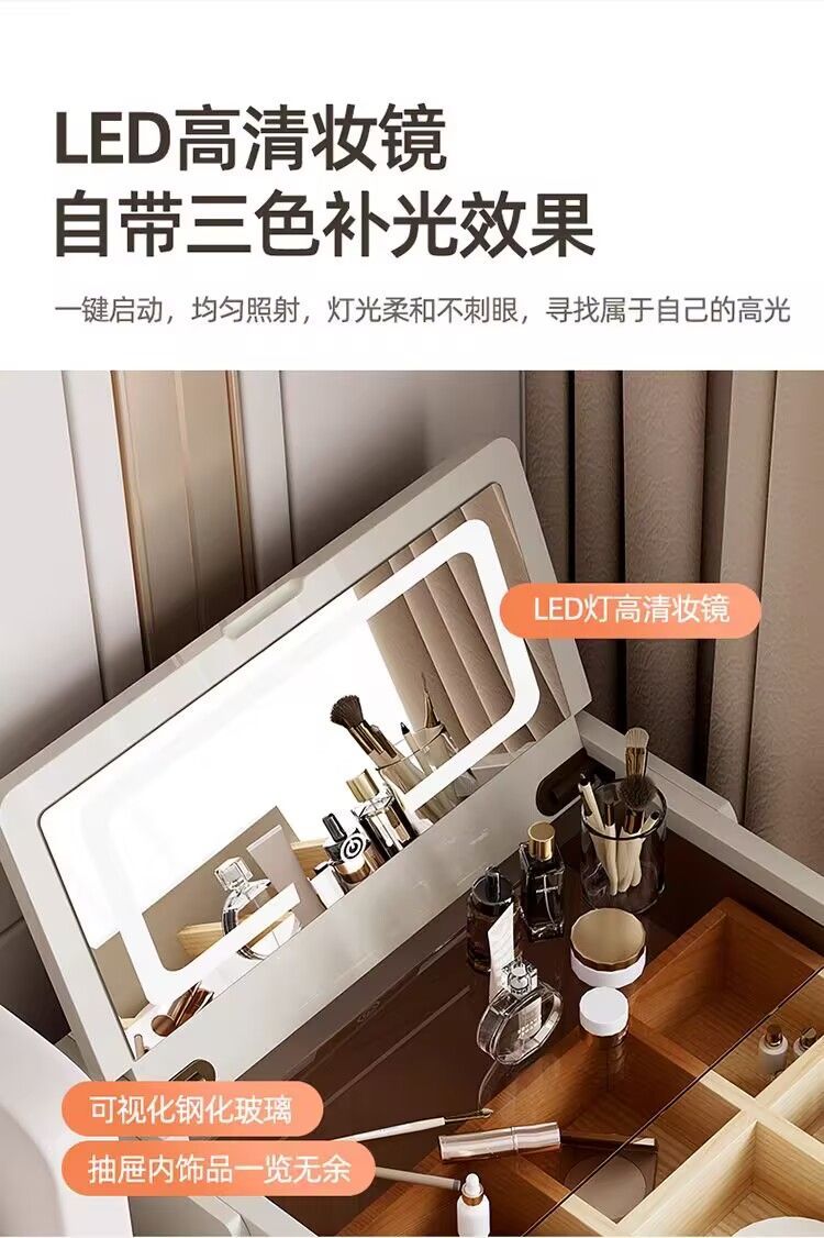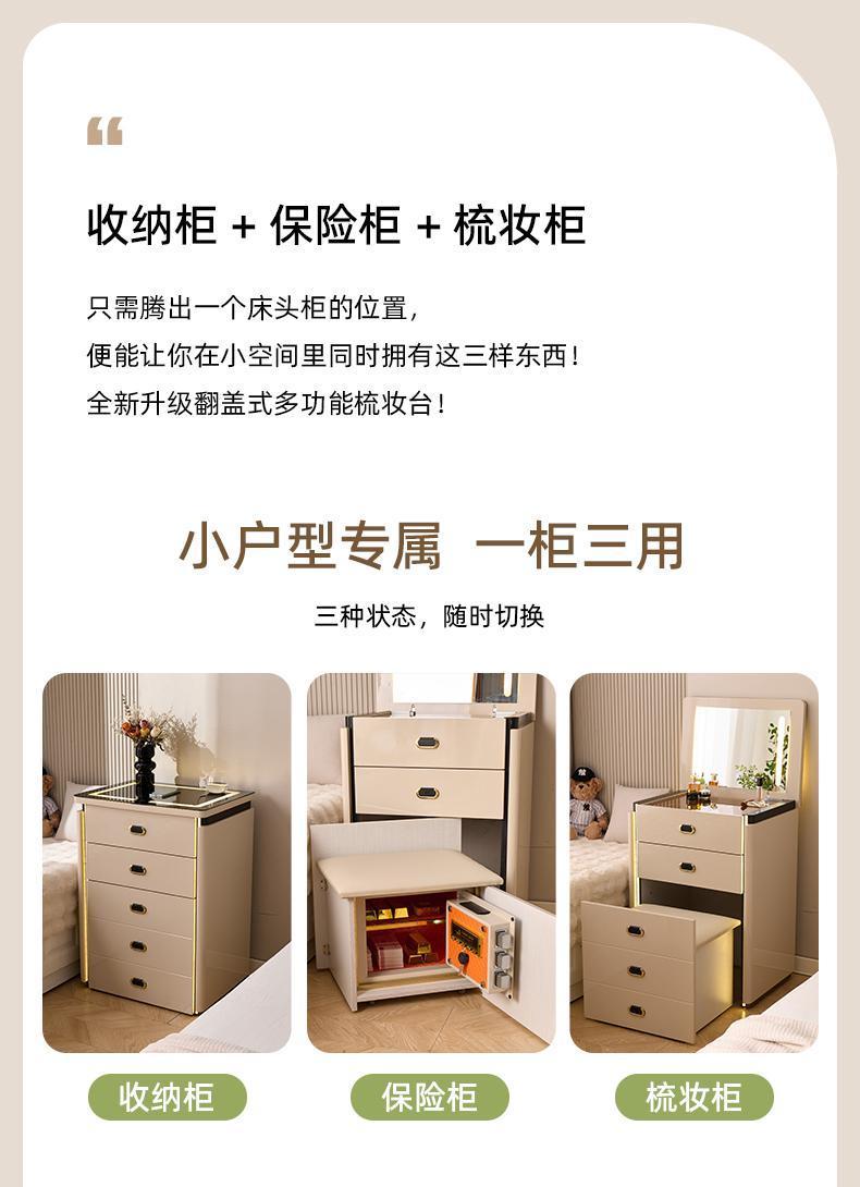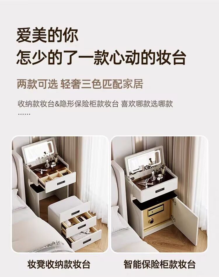 新款梳妆台床头柜保险柜一体多功能卧室化妆台小户型化妆桌子整装
