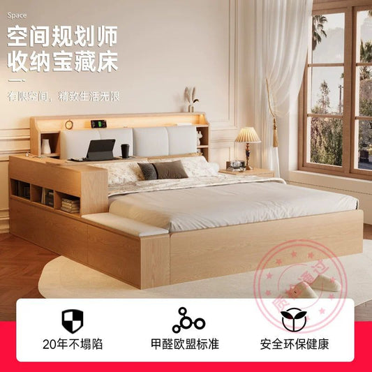 橡木全实木床1米8高箱储物床2025年新款现代简约箱体床主卧双人床