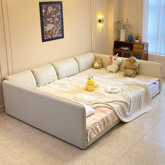 大象耳朵亲子床二胎家庭拼接床主卧一家三四口带护栏油奶风真皮床