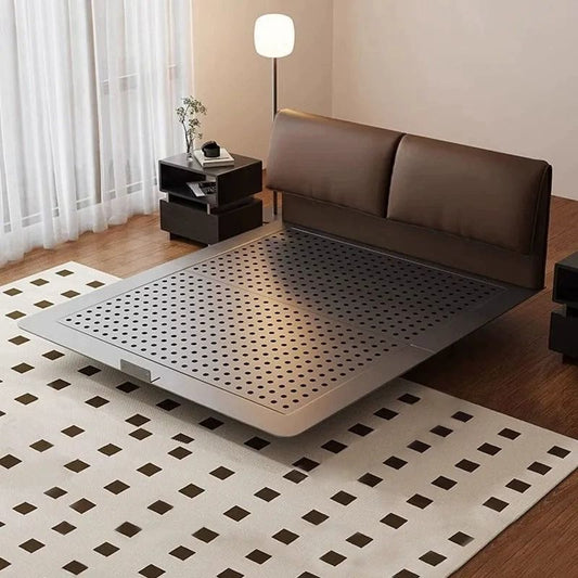奶油大象耳朵碳素钢双人小户型主卧现代简约卧室真皮悬浮超薄床头