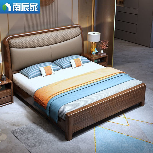 檬榆金丝胡桃木实木床简约中式1.8米双人大床主卧榫卯软靠婚床