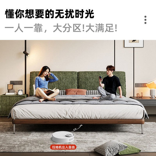 方辰可拆洗绿色雪尼尔大象耳朵床中古风次卧布艺床双人主卧大床