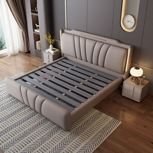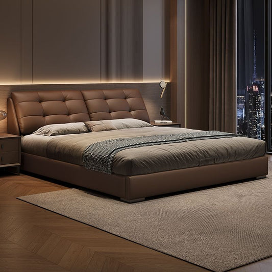 意式现代简约真皮床轻奢风双人床高端主卧网红皮艺床家用储物大床