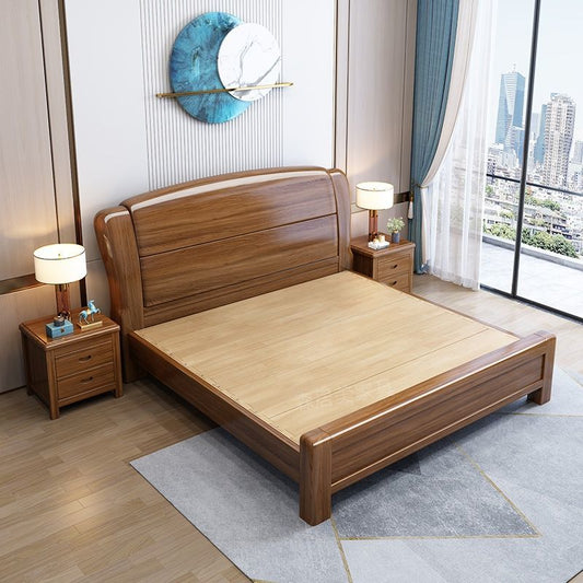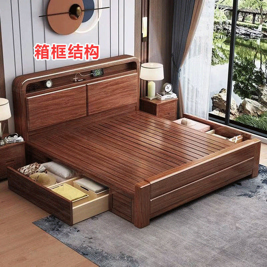 加厚1米2胡桃木实木床主卧轻奢1.8x2米单双人床1.5米家用储物婚床