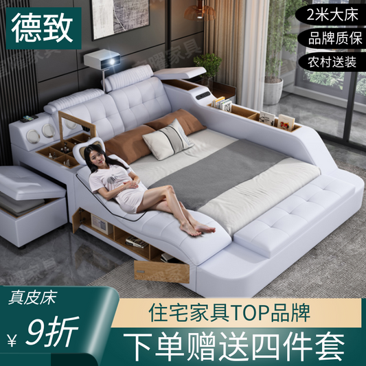 投影仪床多功能按摩真皮床榻榻米床主卧床双人大床1.5米1.8大婚床