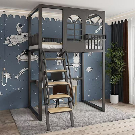 新款上层多功能阁楼铁艺小户型上床铁架床高架空间复式儿童定制