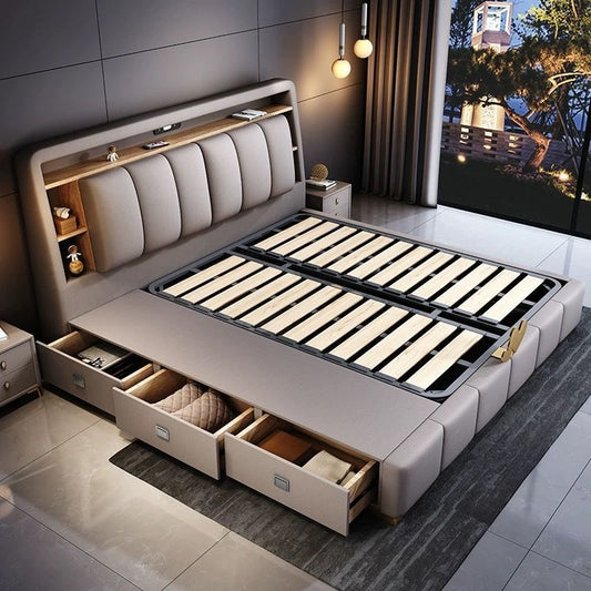 新款多功能意式真皮床双人大床主卧室轻奢现代简约抽屉储物结婚床