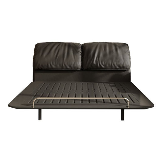 侘寂风钢艺床意式复古碳素钢齐边主卧床小户型大象耳朵真皮悬浮床