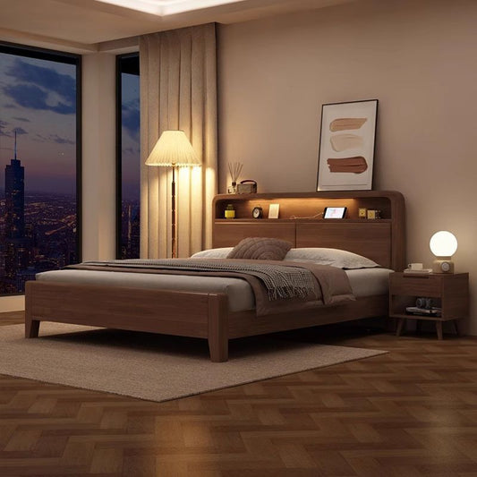 北欧实木床家用双人主卧可置物床头大床现代简约橡胶木出租屋民宿