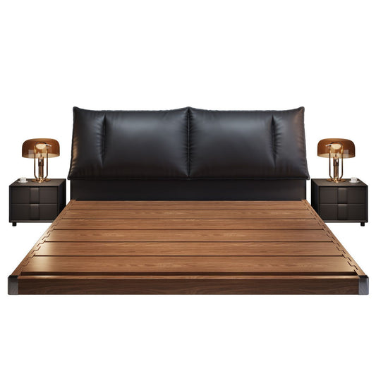 新款全实木榫卯满铺悬浮床主卧双人床意式高端大床软靠背真皮床