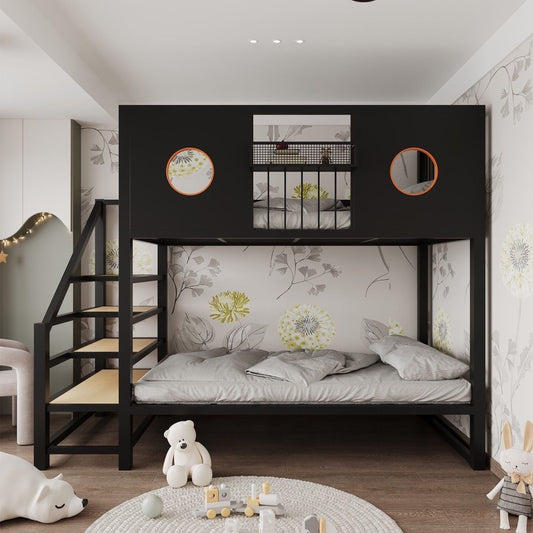 厂家直销床简约省空间铁艺床两层高架床双人上下铺一梯两床高低床