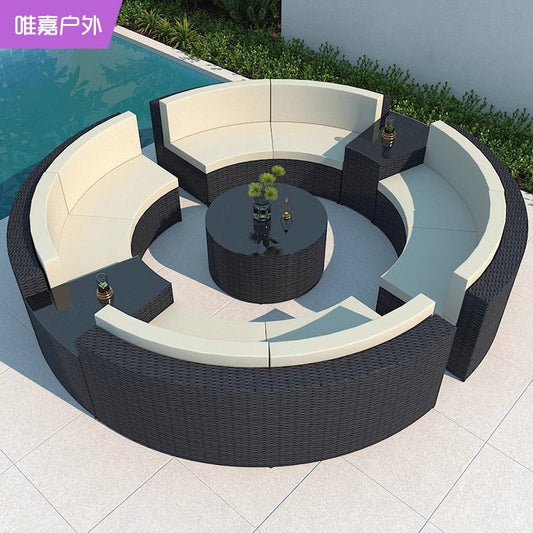 户外藤编半圆形庭院沙发组合简约现代圆弧形民宿休闲藤椅室外家具