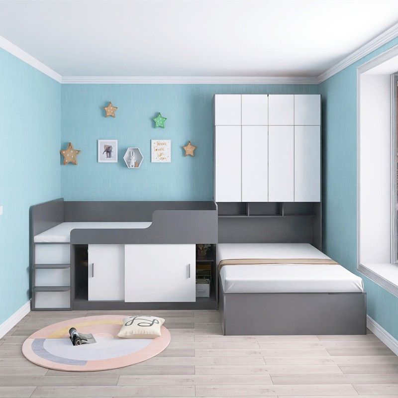 上下床交错式儿童半高床柜一体组合错位子母床箱榻榻米小户型