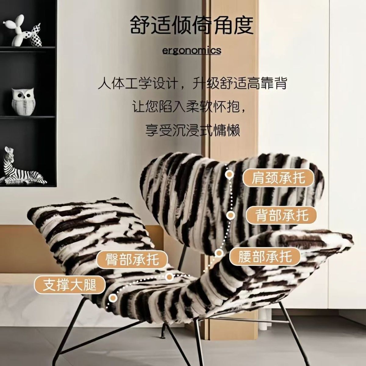 丘比特懒人沙发椅意式单人沙发椅高级轻奢客厅躺椅兔毛绒保暖座椅