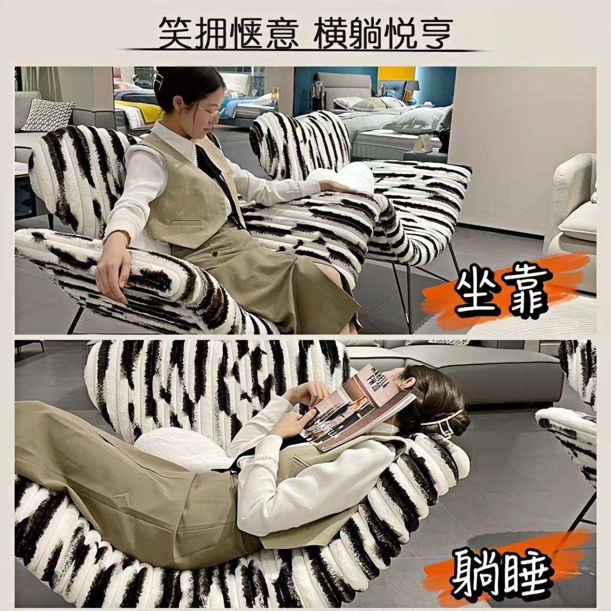 訂單滿4000台幣含運,魯班傢俱行 統編60015967台灣公司魯班傢俱行歡迎您。註冊統編60015967 丘比特懒人沙发椅意式单人沙发椅高级轻奢客厅躺椅兔毛绒保暖座椅