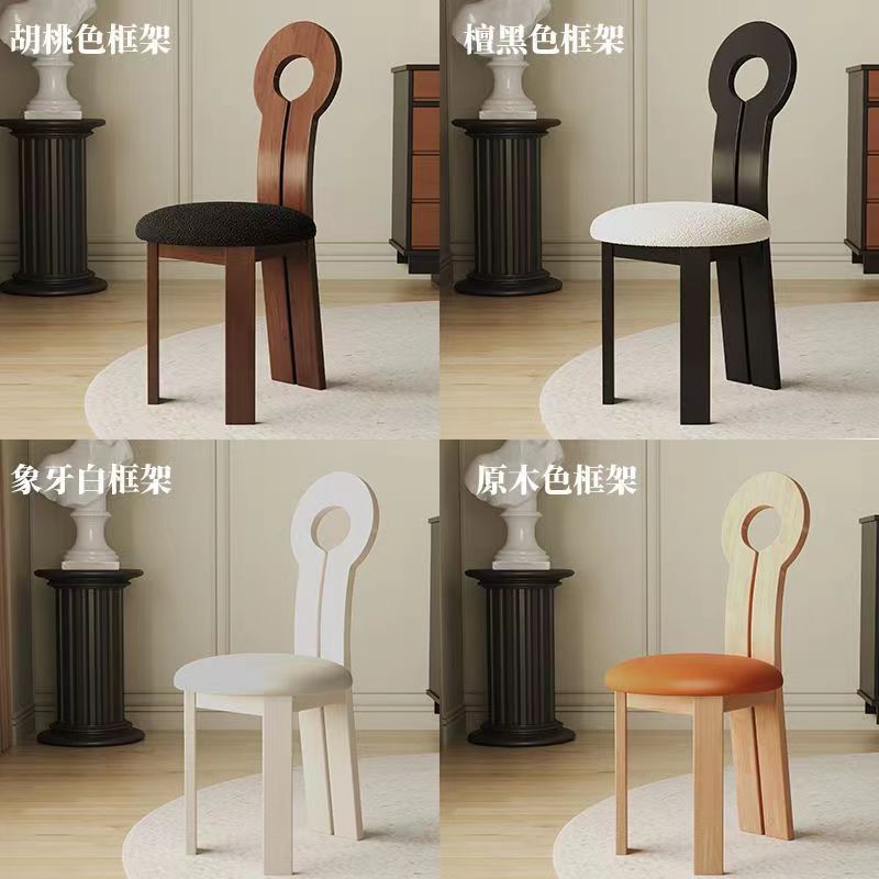 中古风实木餐椅家用现代简约实木靠背椅子北欧法式艺术复古钥匙椅