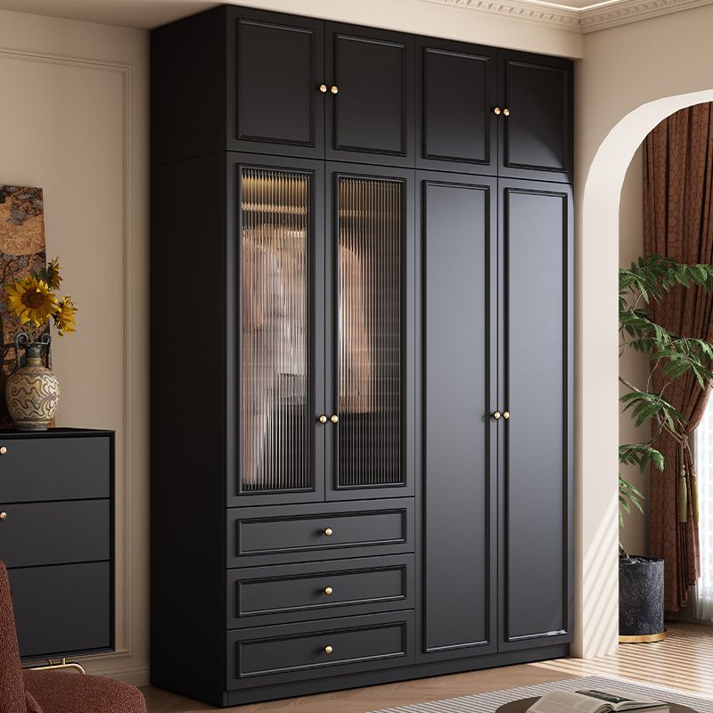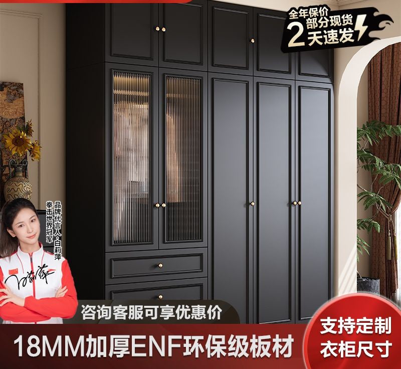 中古风衣柜黑色柜子衣柜家用卧室小户型现代简约边柜顶柜现货美式