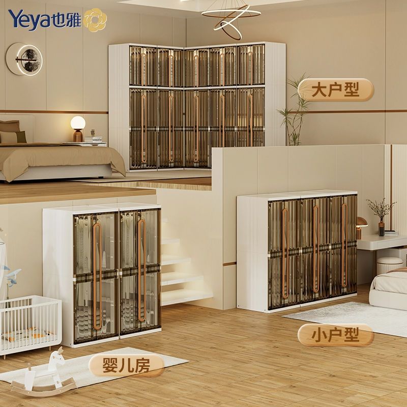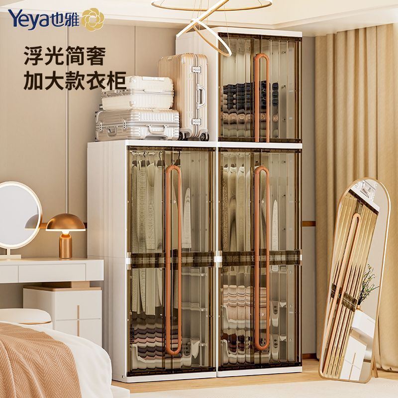 也雅收纳柜挂衣服简易成人简约易橱家用塑料储物卧室双开户型落地