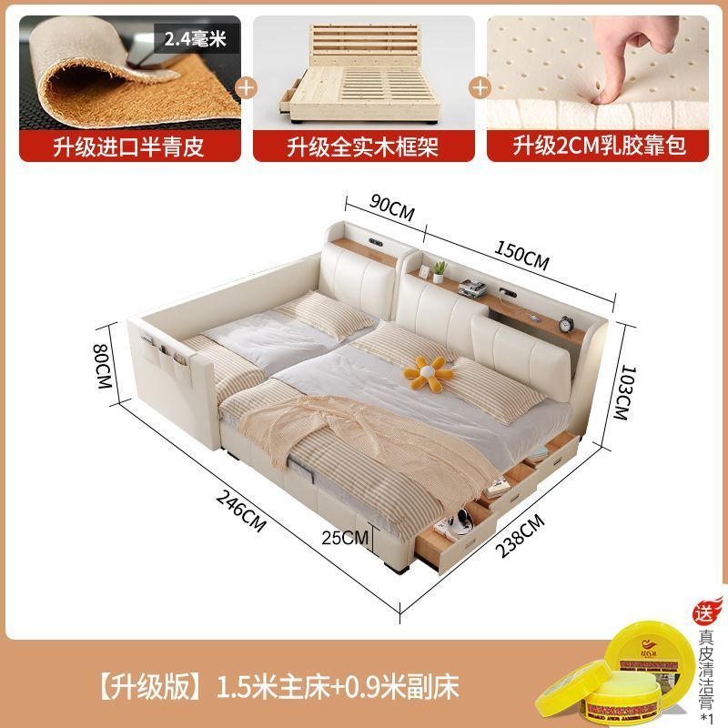 亲子床二胎家庭床一家三四口4人超大3米床儿童子母加宽实木拼接床