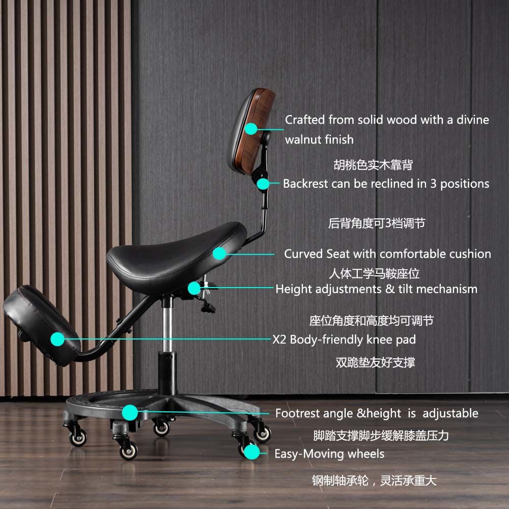 人体工学椅电脑椅家用舒适久坐骑马椅靠背椅子坐姿矫正跪椅可调节