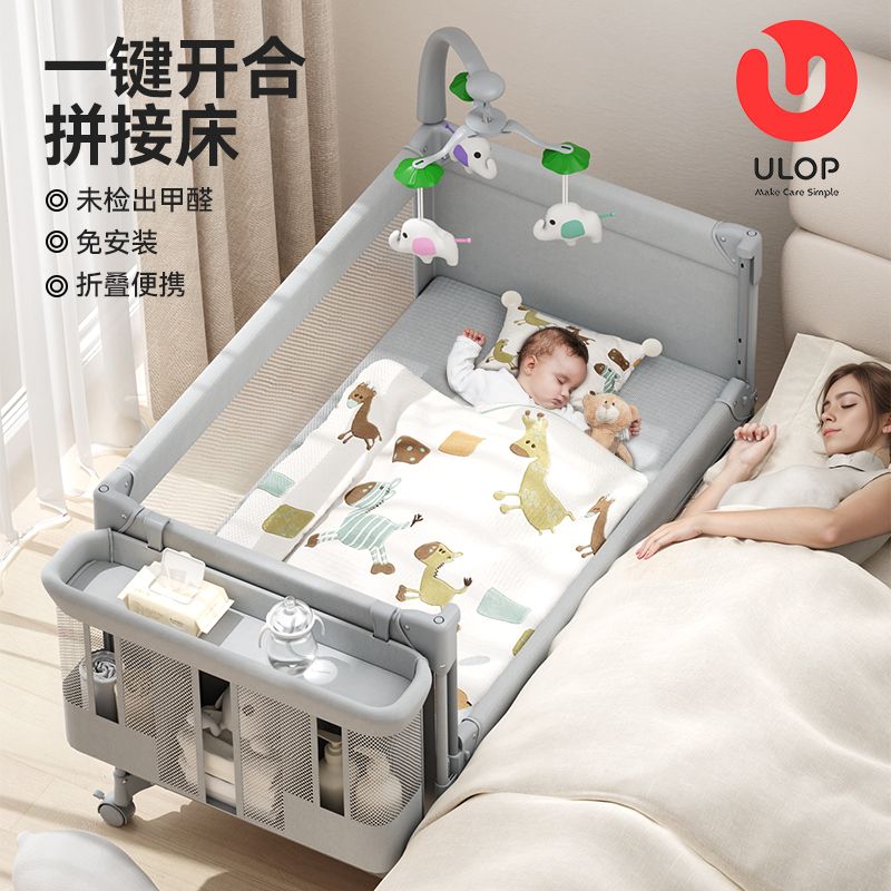 优乐博婴儿床新生儿床尿布台多功能可折叠拼接床宝宝床婴儿摇摇床