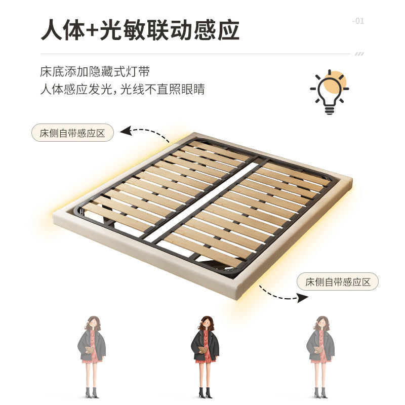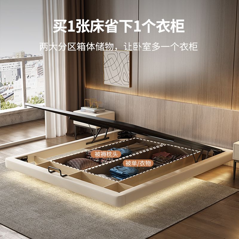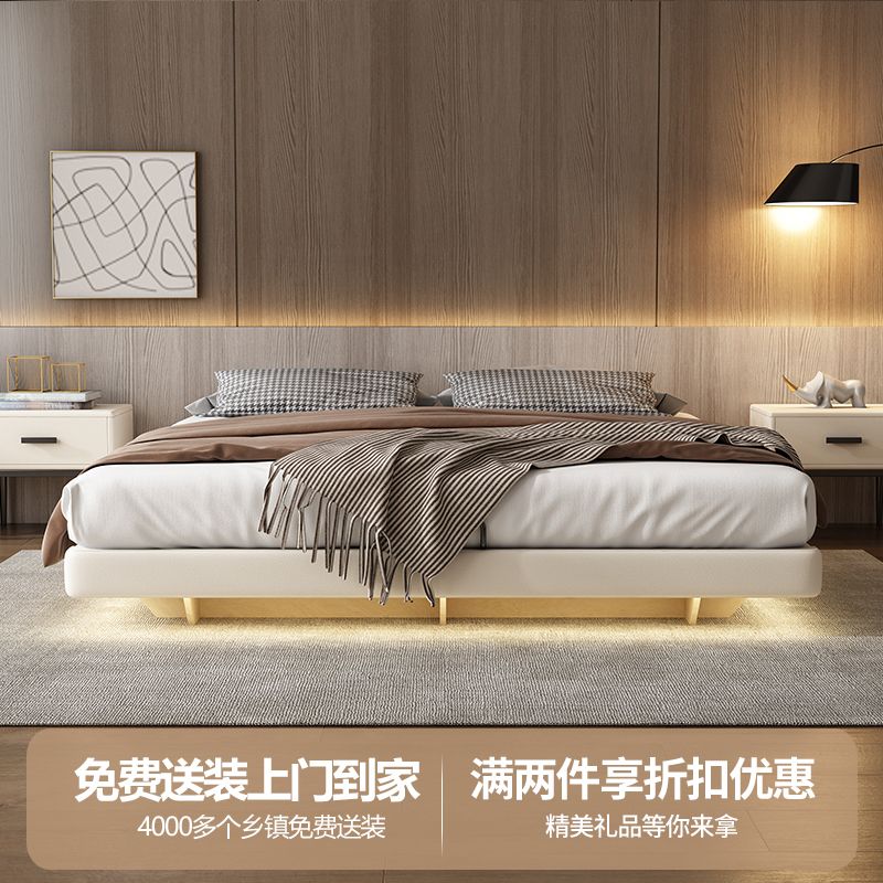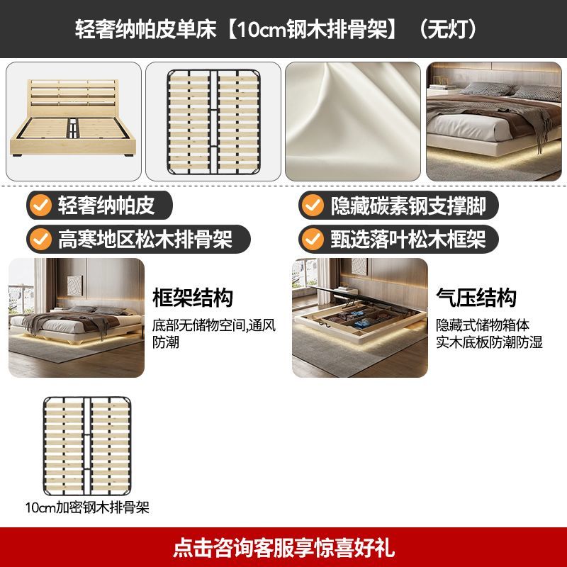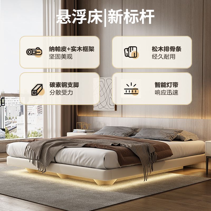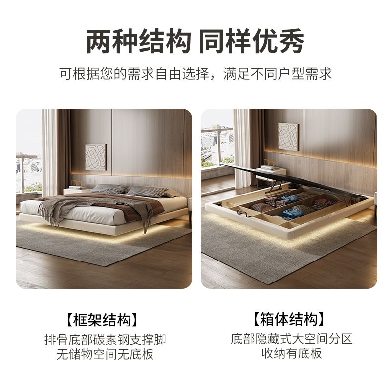 佐慕无床头悬浮储物皮艺床现代简约轻奢实木次卧钢木骨架双人大床