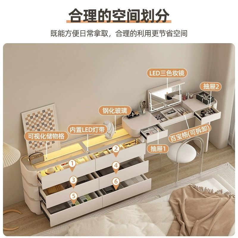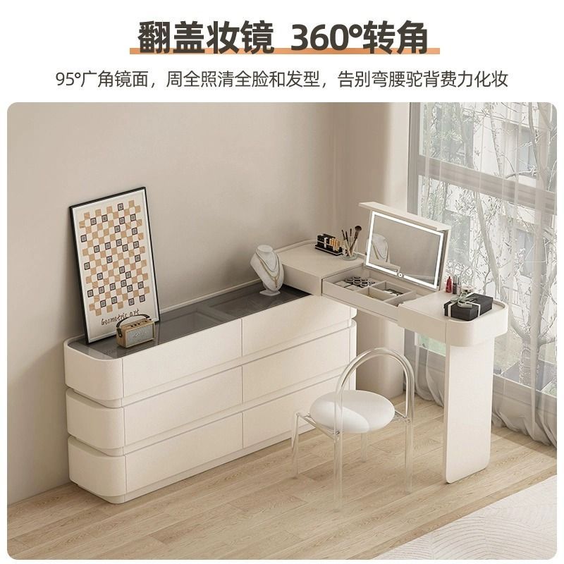 佐诗顿轻奢岩板卧室梳妆台一体超薄斗柜现代简约伸缩化妆桌收纳柜
