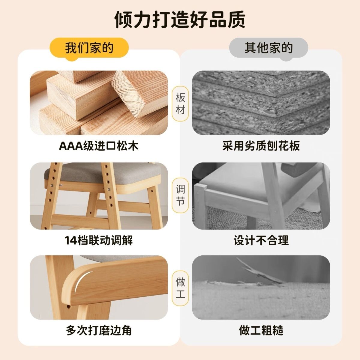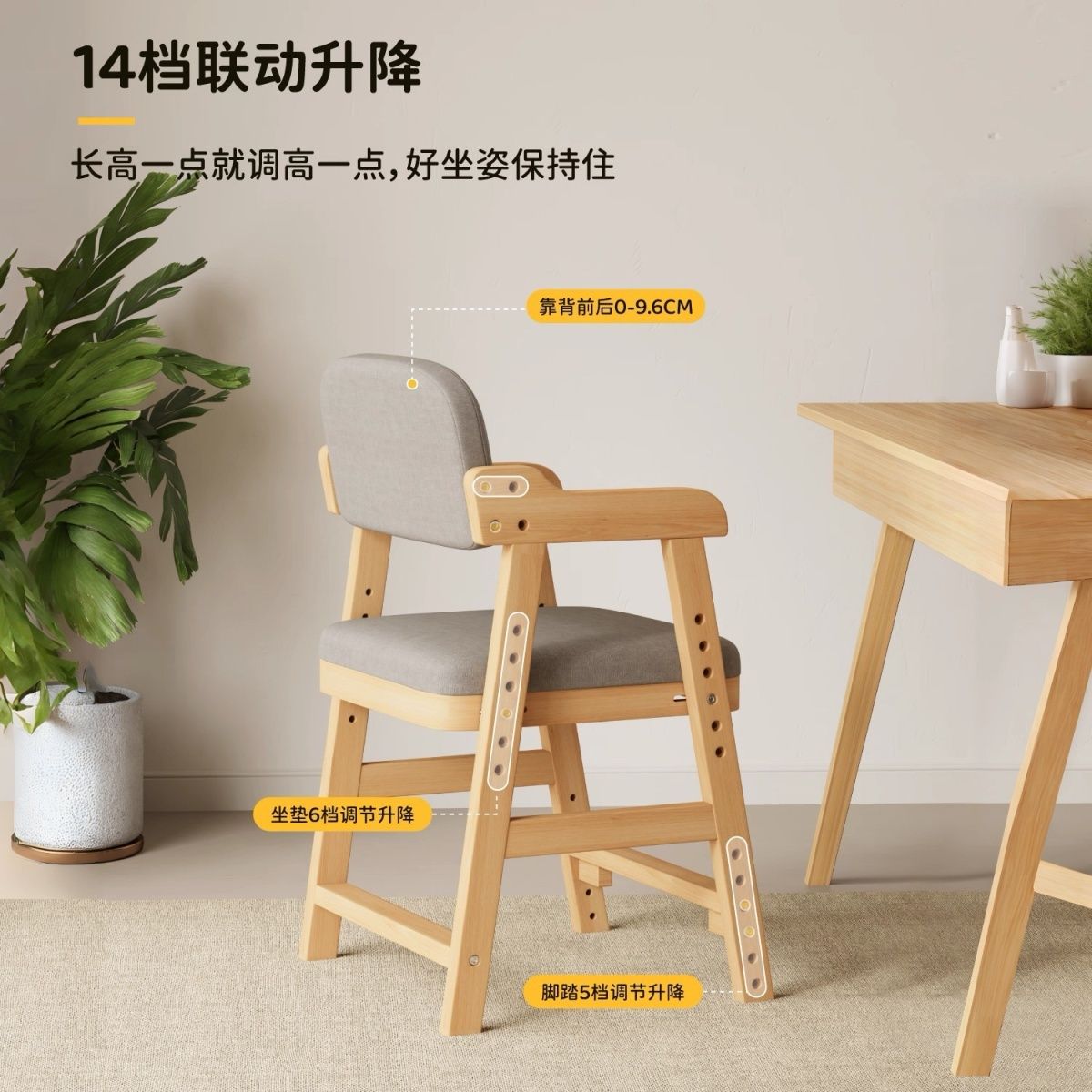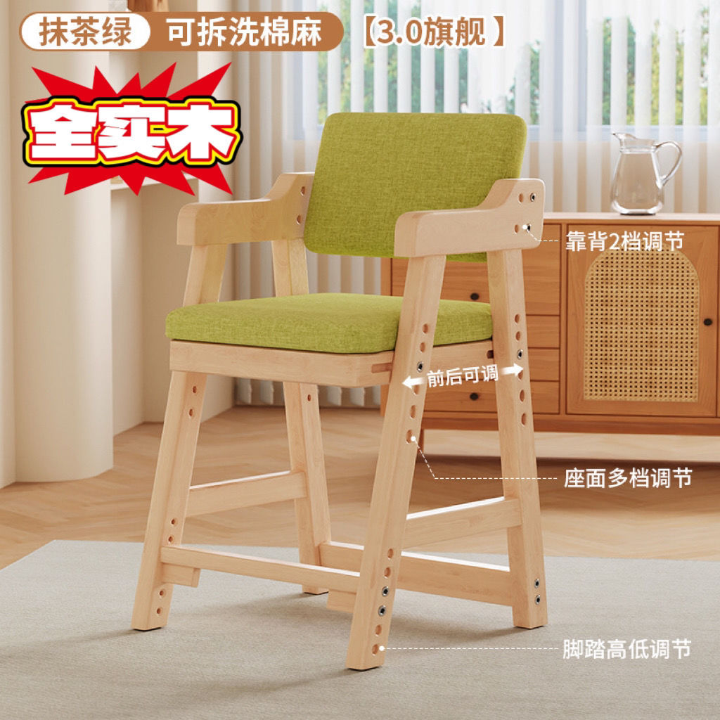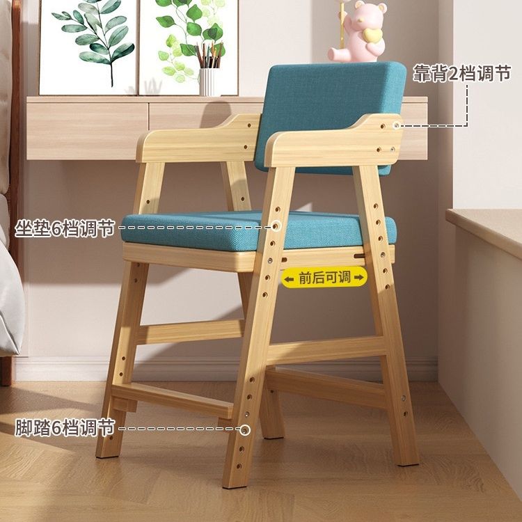 儿童学习椅子可升降调节实木靠背座椅小学生坐姿矫正写字书桌餐椅