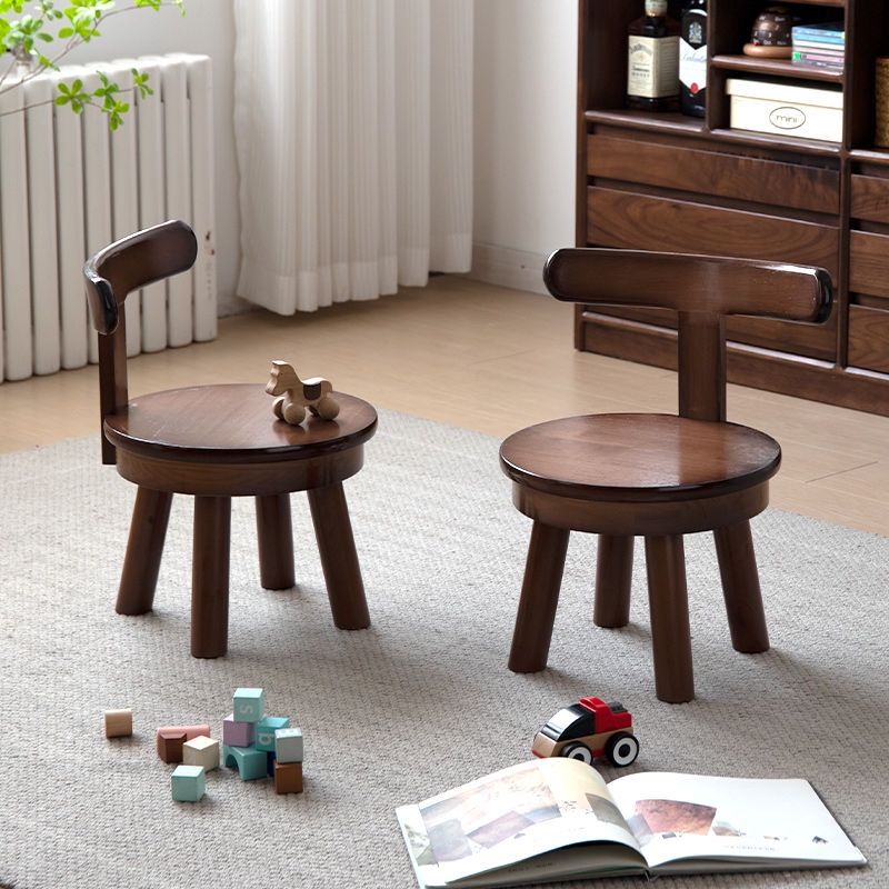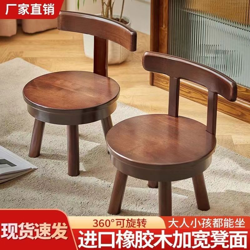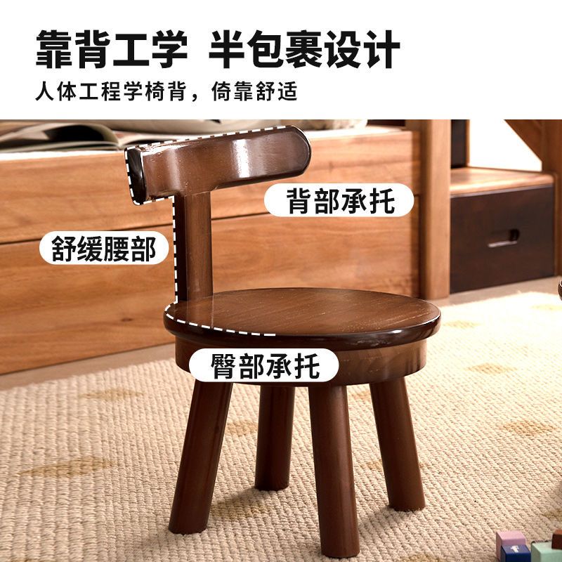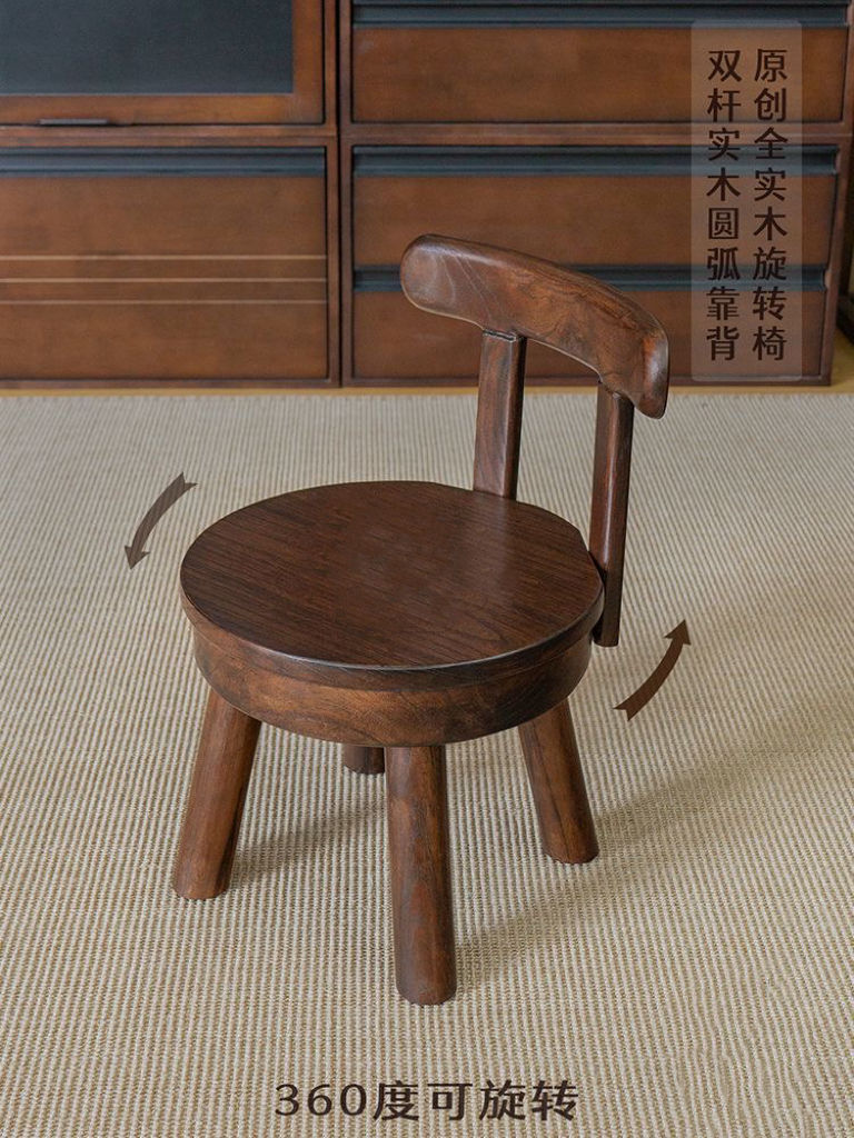 儿童实木凳子旋转家用靠背小椅子矮凳客厅沙发茶几网红中式换鞋凳